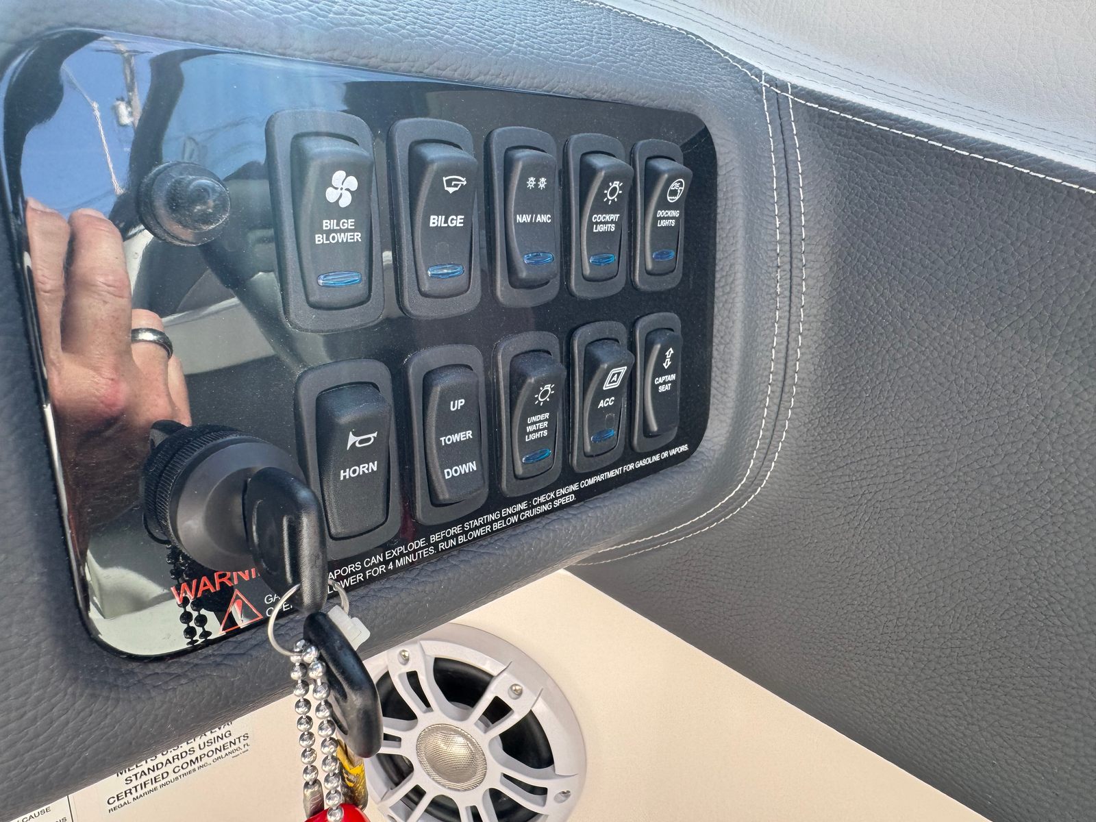 The LS2 Surf Bowrider shines in a variety of scenarios, making it the perfect choice for families, couples, and groups of friends. Imagine spending a sunny afternoon cruising with loved ones, enjoying the spacious seating and vibrant atmosphere. For watersports enthusiasts, the powerful engine and forward drive system provide the performance needed for wakeboarding, tubing, and more. The SeaDek Swim Platform is perfect for swimmers and sunbathers, offering a safe and comfortable spot to relax by the water. Whether you’re planning a fishing trip, a luxury getaway, or a casual day exploring new coves, the LS2 Surf adapts to your needs and delivers an unforgettable experience every time.