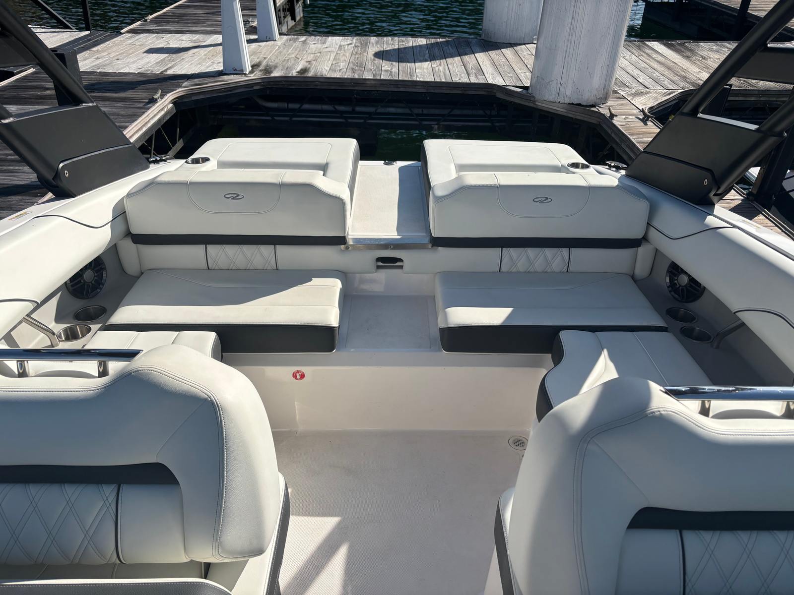 Owning the Regal LS2 bowrider means embracing a lifestyle of fun, relaxation, and social connection. The spacious bow seating area invites friends and family to gather, laugh, and soak up the sun. The open layout encourages easy movement throughout the boat, making it perfect for entertaining or simply unwinding after a day of water sports. The plush seating and ergonomic design ensure everyone on board enjoys a comfortable ride, whether you’re cruising at speed or anchored for a swim.The LS2’s advanced features, such as the dual Garmin 743 displays and OneCaptain system, provide peace of mind and effortless control, allowing you to focus on making memories. The powerful Volvo engine ensures you have the performance needed for water skiing, wakeboarding, or simply exploring new destinations. With its stylish design and premium finishes, the Regal LS2 is sure to impress guests and fellow boaters alike.