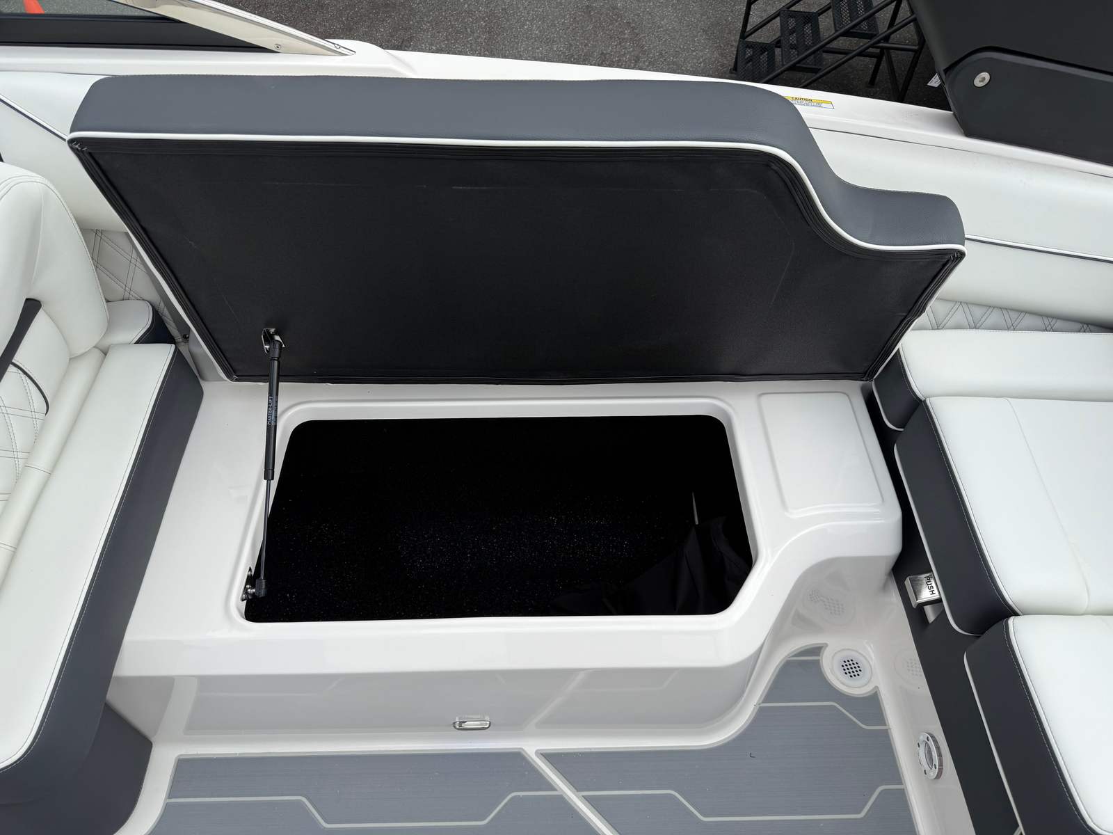 The LS4 Surf is packed with special features that set it apart from other Bowrider boats for sale. The Mediterranean Blue hull color is complemented by a striking Tahiti Beach White bootstripe, creating a sophisticated and eye-catching profile. Fender clips offer convenient docking and protection, while the watersport mirror ensures optimal visibility for drivers and spotters during active sessions. The SeaDek cockpit sole and SeaDek swim platform provide a soft, non-slip surface for added comfort and safety, whether you’re lounging or preparing for watersports.Bow walk-thru doors make moving between the bow and cockpit effortless, enhancing both safety and convenience. The stainless steel flag pole with a U.S. flag adds a touch of patriotic flair and elegance, while the black bottom color completes the boat’s modern aesthetic. Every detail of the LS4 Surf is designed to maximize enjoyment and usability, making it a standout choice for anyone seeking a Regal boat for sale with premium features.