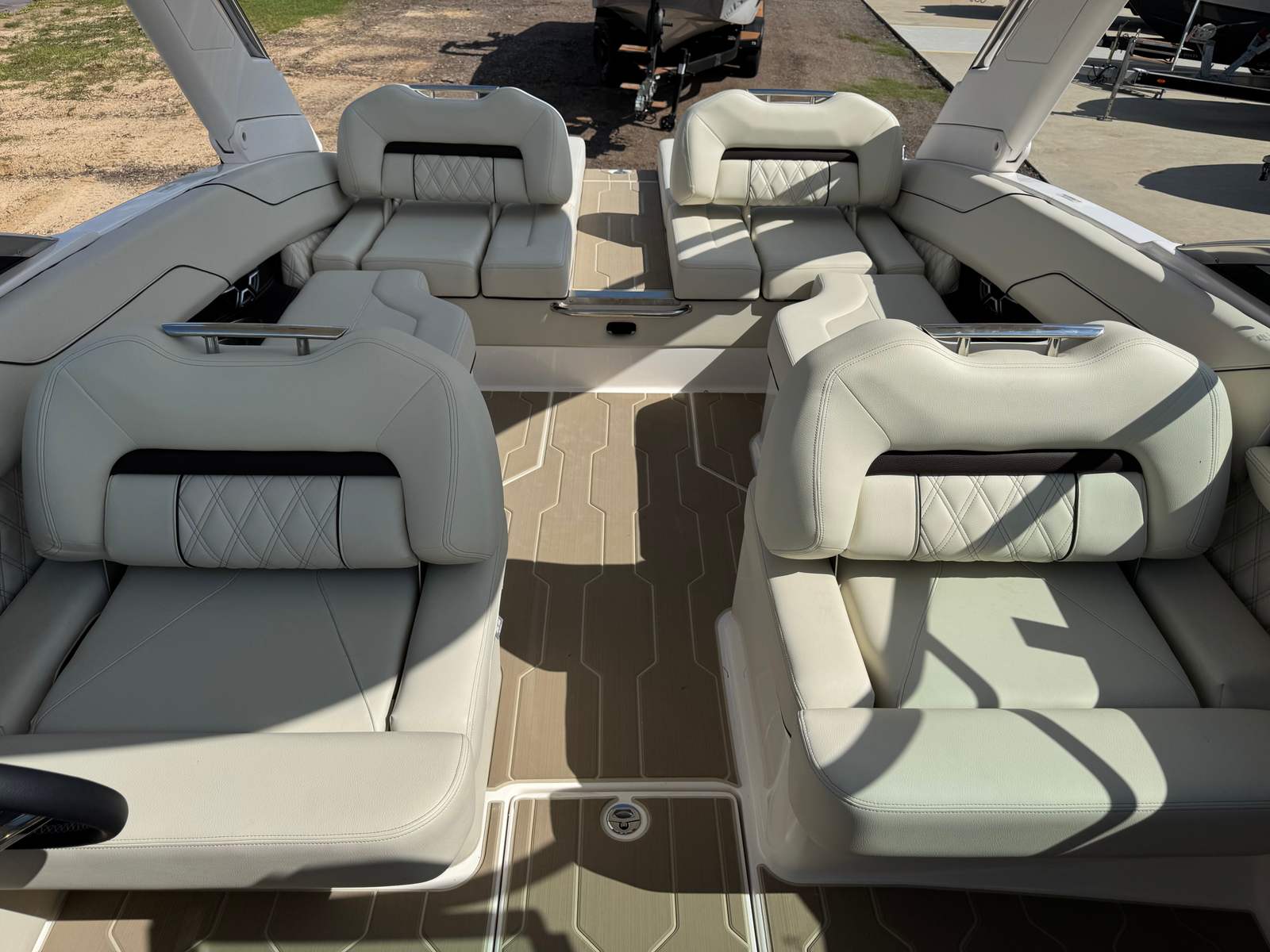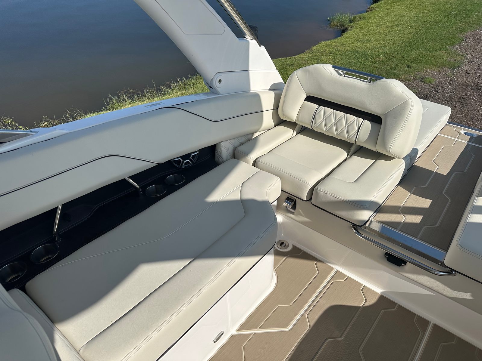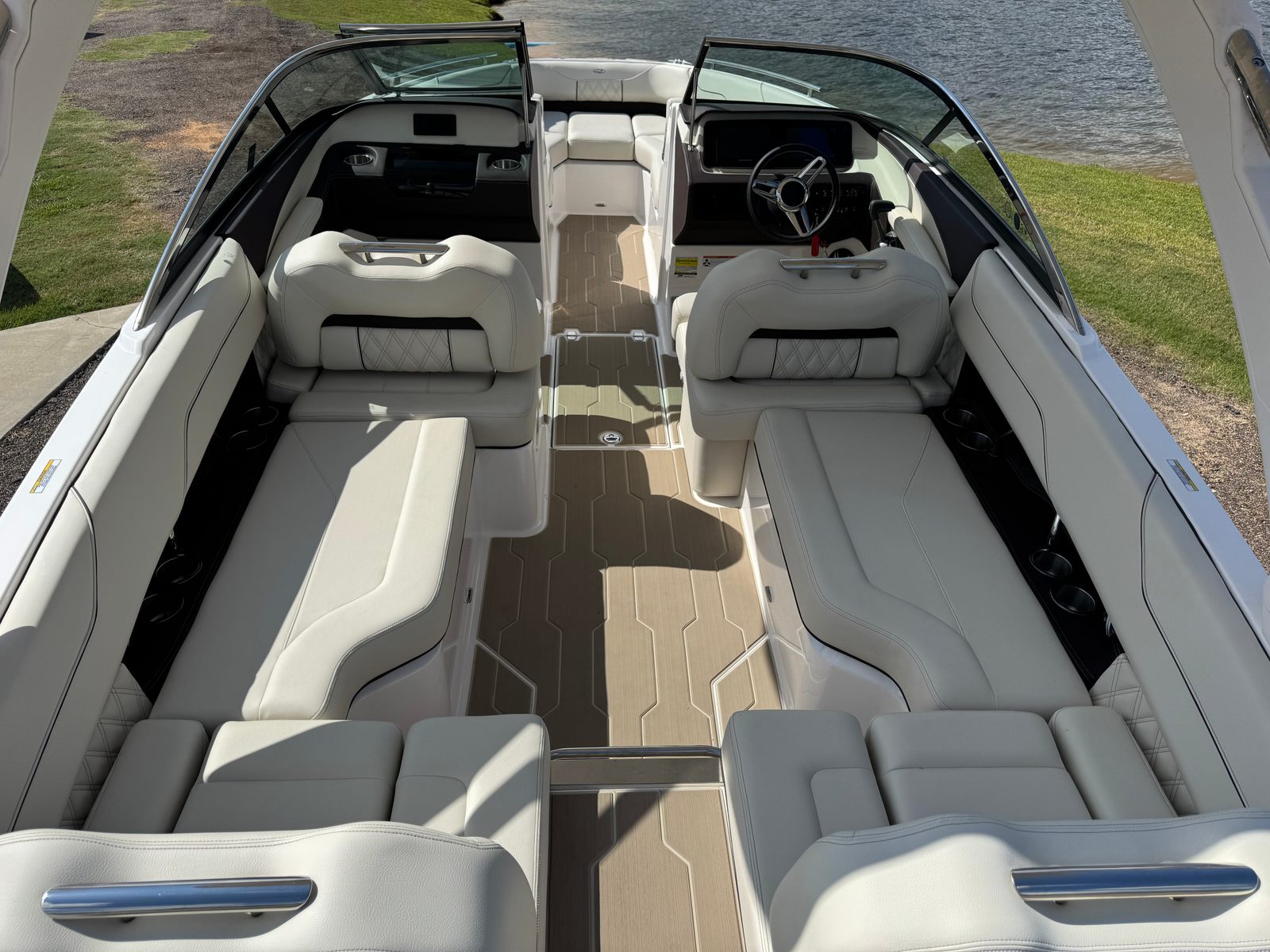 The Regal LS4 Surf is designed with practicality in mind, making ownership easy and enjoyable. The swim platform cover protects your boat from the elements, while the travel storage cover keeps it secure during transport or storage. The dual battery system and onboard charger provide peace of mind, ensuring you always have the power you need for a full day on the water.Docking and maneuvering are effortless thanks to the advanced forward-drive system and transom trim switch, allowing you to adjust your setup for any situation. The spacious layout offers plenty of room for gear, coolers, and water toys, making it easy to bring everything you need for a day of fun. The durable SeaDek surfaces are easy to clean and maintain, so you can spend more time enjoying your boat and less time on upkeep.