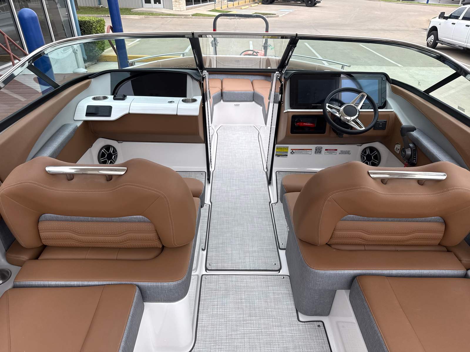 Step aboard the LS4 Surf and you are greeted by a world of comfort and style. The interior is a masterpiece of design, featuring a sophisticated blend of Saddle Brown, Denim Cement, and additional Saddle Brown accents. This unique color palette creates a warm, inviting atmosphere that is both modern and timeless. The cockpit is outfitted with a premium Seagrass Mat, offering a soft, non-slip surface that is perfect for barefoot comfort and easy cleaning after a day on the water.The SeaDek Swim Platform is another standout feature, providing a safe, cushioned area for swimmers and water sports enthusiasts to gear up or relax by the water’s edge. Digital Switching technology brings convenience to your fingertips, allowing you to control onboard systems with ease and precision. The included travel storage cover helps protect your investment from the elements, ensuring your LS4 Surf remains in pristine condition season after season.