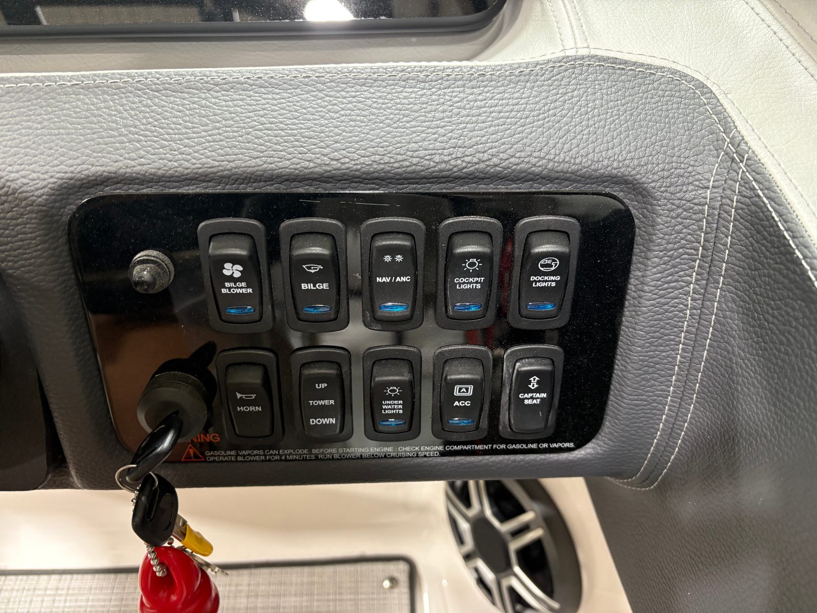 The Regal LS4 is designed with practicality in mind, making ownership as enjoyable as your time on the water. The travel storage cover protects your boat from the elements, preserving its beauty and value. The dual battery switch system provides reliable power management, so you can confidently run your electronics and accessories without worry. Docking is made easier and safer with integrated docking lights, allowing for smooth arrivals even after sunset.The thoughtful layout offers ample storage for your gear, ensuring everything you need for a day on the water is within easy reach. The efficient single-engine setup not only delivers impressive performance but also helps optimize fuel consumption, making your adventures more economical and environmentally friendly.