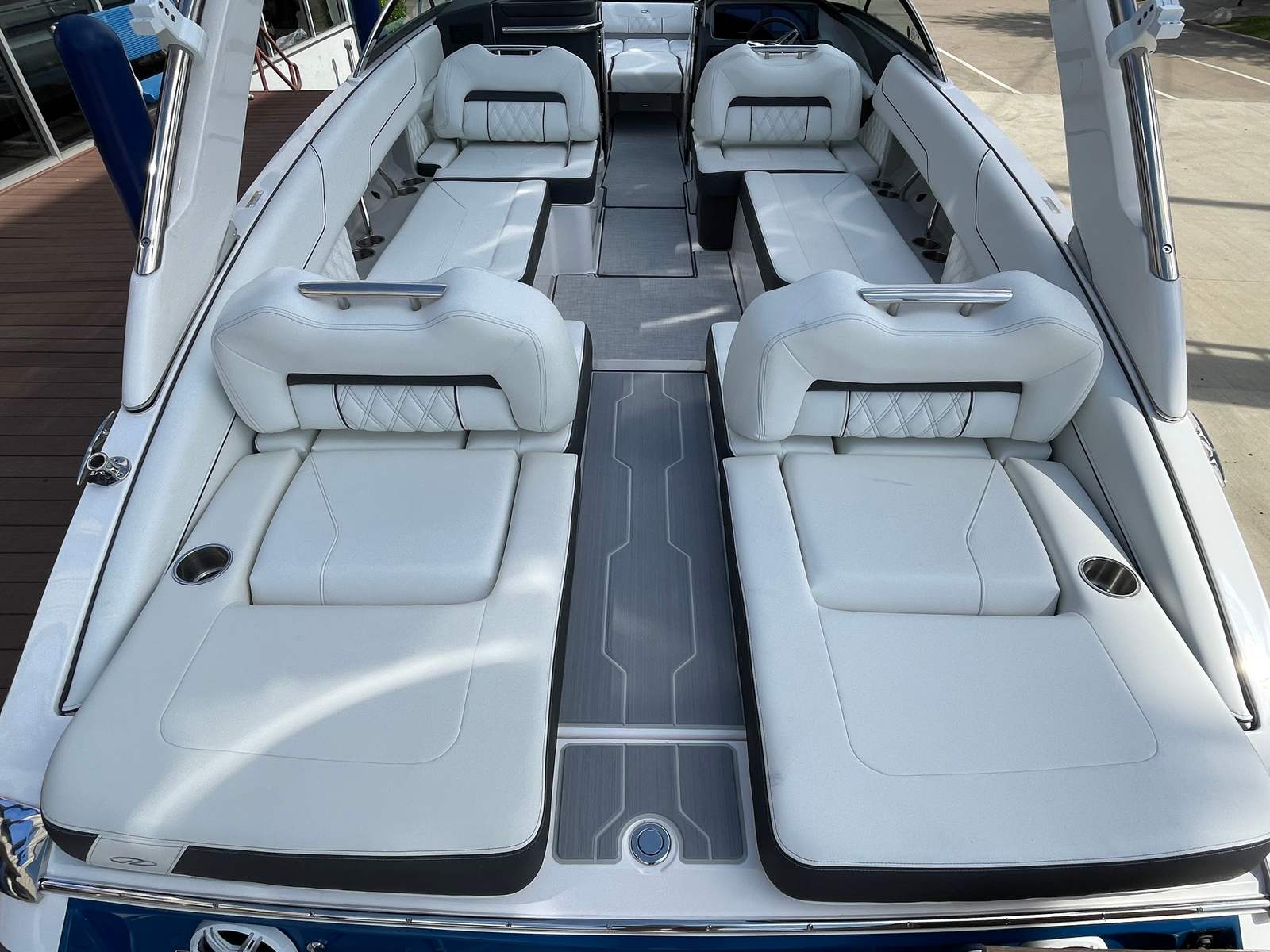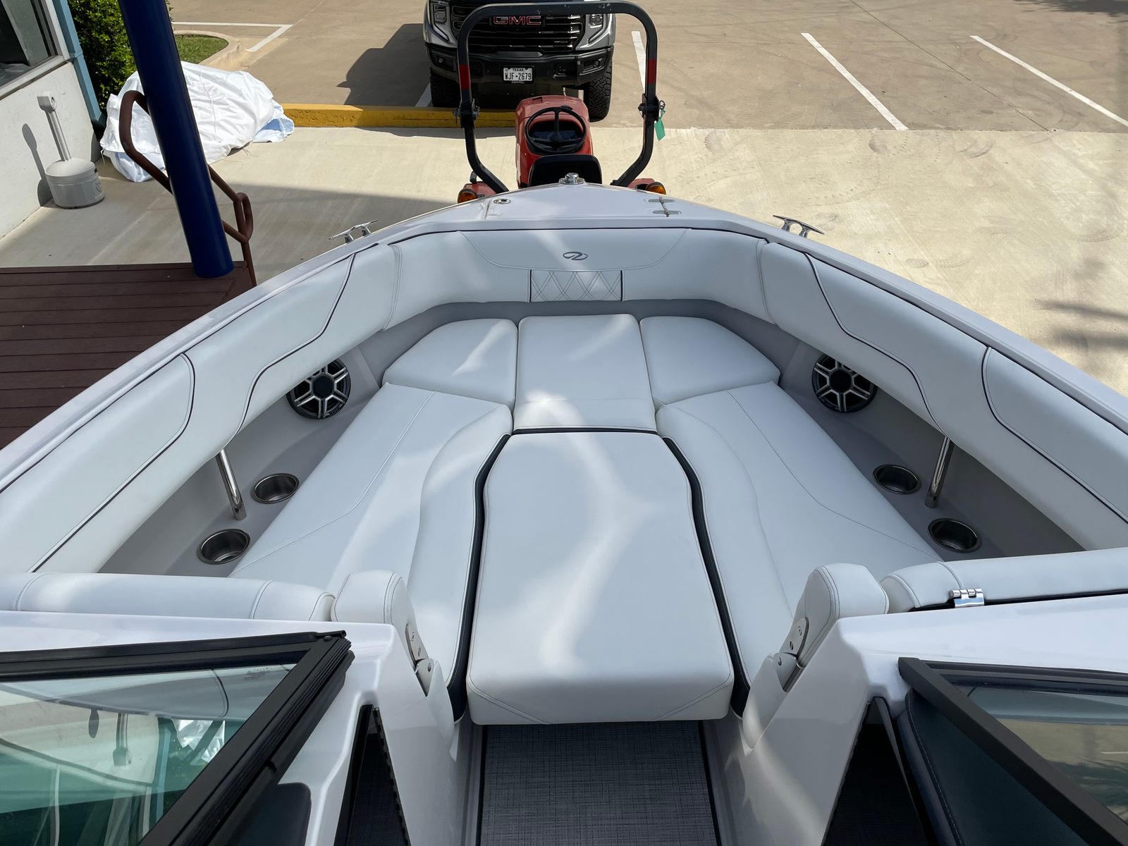 Owning the Regal LS6 Surf means embracing a lifestyle of fun, relaxation, and connection. The spacious bowrider layout offers plenty of room for family and friends, making it easy to host gatherings, celebrate special occasions, or simply enjoy a day on the water. The plush seating and thoughtful design details create an inviting atmosphere, while the advanced engine and hull design promise excitement for watersports lovers. The SeaDek swim platform and cockpit seagrass mat enhance comfort and safety, allowing everyone to move freely and enjoy every moment. With its eye-catching color scheme and premium finishes, the LS6 Surf is as stylish as it is functional, ensuring you make a statement wherever you go.