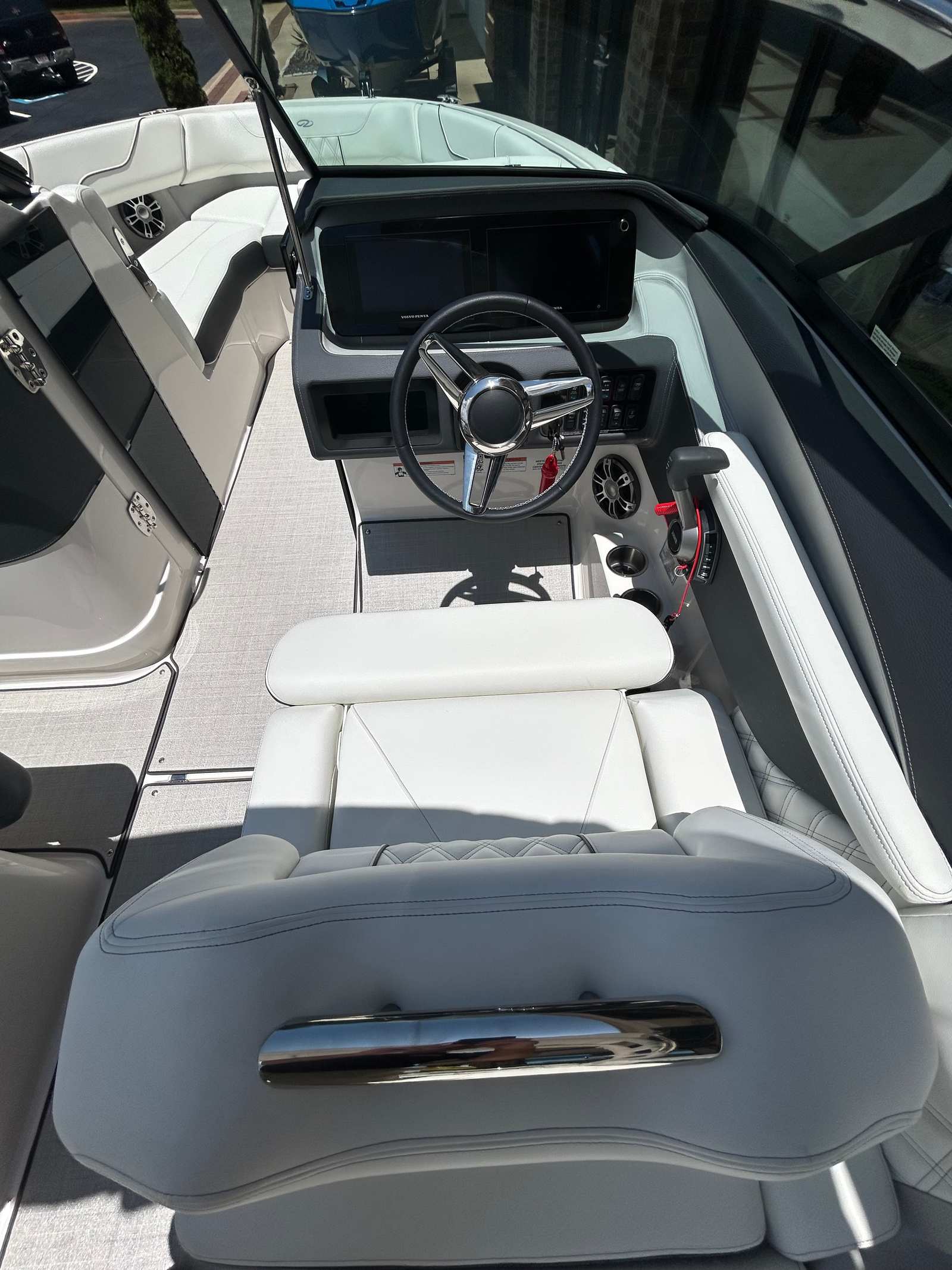 At the heart of the LS6 Surf is a powerful Volvo V8 380 FWD EVC2 DP CAT engine, delivering an impressive 380 horsepower. This single-engine setup ensures smooth, responsive handling and plenty of power for all your water sports adventures. Whether you’re cruising at high speeds, carving through waves, or towing wakeboarders, the LS6 Surf’s advanced propulsion system offers exceptional performance and reliability. The forward drive technology enhances maneuverability and safety, making it easy to navigate tight marinas or open water with confidence.