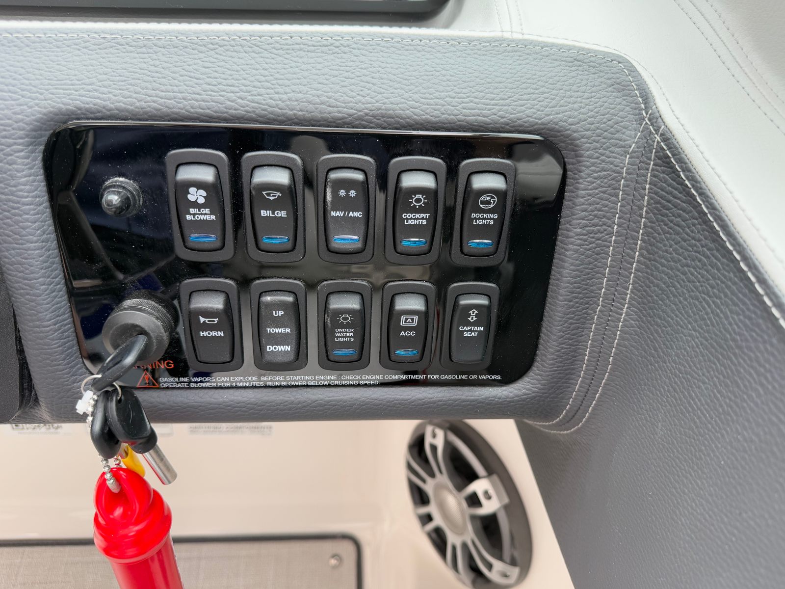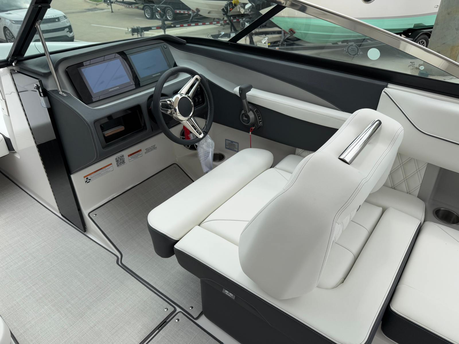 Step aboard the Regal LS6 and discover a world of comfort and convenience. The boat’s special features are designed to enhance every aspect of your boating experience. The cockpit is adorned with a luxurious Seagrass Mat, offering a soft and stylish surface that’s both comfortable and easy to maintain. The SeaDek Swim Platform provides a safe and slip-resistant area for swimming, sunbathing, or preparing for water sports, ensuring everyone on board can enjoy the water with confidence.For added protection and peace of mind, the LS6 comes equipped with a travel storage cover in black, keeping your investment safe from the elements when not in use. The black canvas adds a touch of elegance while providing shade and shelter during sunny days. Practicality meets innovation with the dual battery switch, tray, and cables, allowing for seamless power management and extended time on the water. The onboard battery charger ensures your boat is always ready for adventure, minimizing downtime and maximizing fun.