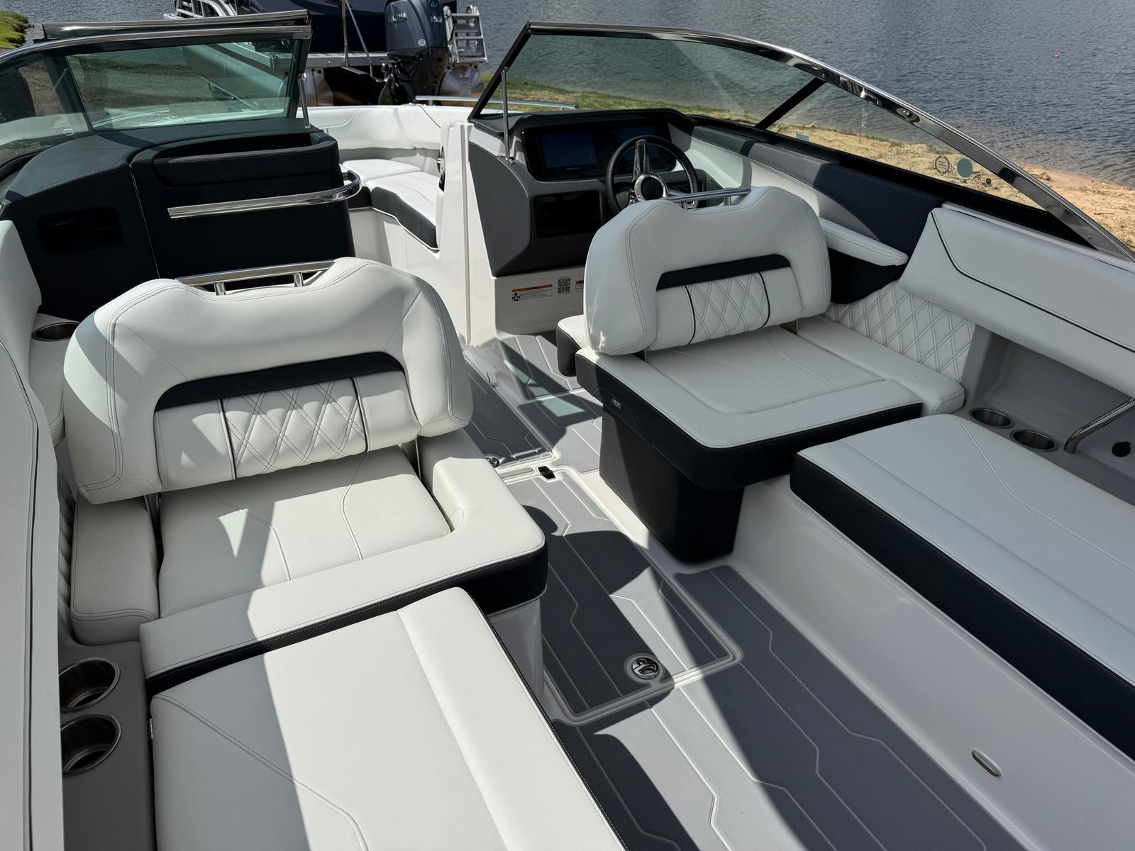 Practicality meets luxury in the 2026 Regal LS6. The travel storage cover and swim platform cover help protect your investment, keeping your boat looking its best season after season. The dual battery switch and battery charger provide peace of mind, ensuring your boat is always ready to go when you are. The SeaDek surfaces not only enhance safety but also make cleaning and maintenance a breeze, so you can spend more time enjoying the water and less time worrying about upkeep.Docking and maneuvering are simplified thanks to the LS6’s responsive handling and intuitive controls. The transom trim switch allows for easy adjustments, making it simple to achieve the perfect ride in any conditions. With its generous length of over 26 feet, the LS6 offers plenty of storage for gear, water toys, and essentials, making it ideal for extended outings and spontaneous adventures alike.