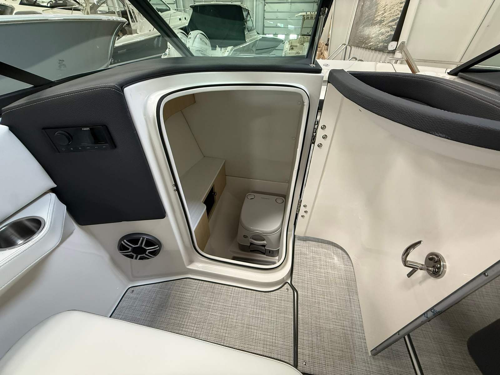 The Regal LS6 Bowrider is packed with special features that elevate your boating experience. The hull is finished in Tahiti Beach White, complemented by a Mediterranean Blue bootstripe and matching bottom color, creating a striking visual appeal. The interior boasts a Titanium finish, offering both durability and elegance. For protection and style, the boat includes Bow & Cockpit Covers in Mediterranean Blue canvas, ensuring your investment stays in pristine condition.Comfort is further enhanced by the Cockpit Seagrass Mat, providing a soft and stylish surface underfoot. Practicality is built in with a Dual Battery Switch, complete with tray and cables, and a Battery Charger, ensuring you have reliable power for all your adventures. These features combine to make the LS6 not only beautiful but also functional and ready for any outing.