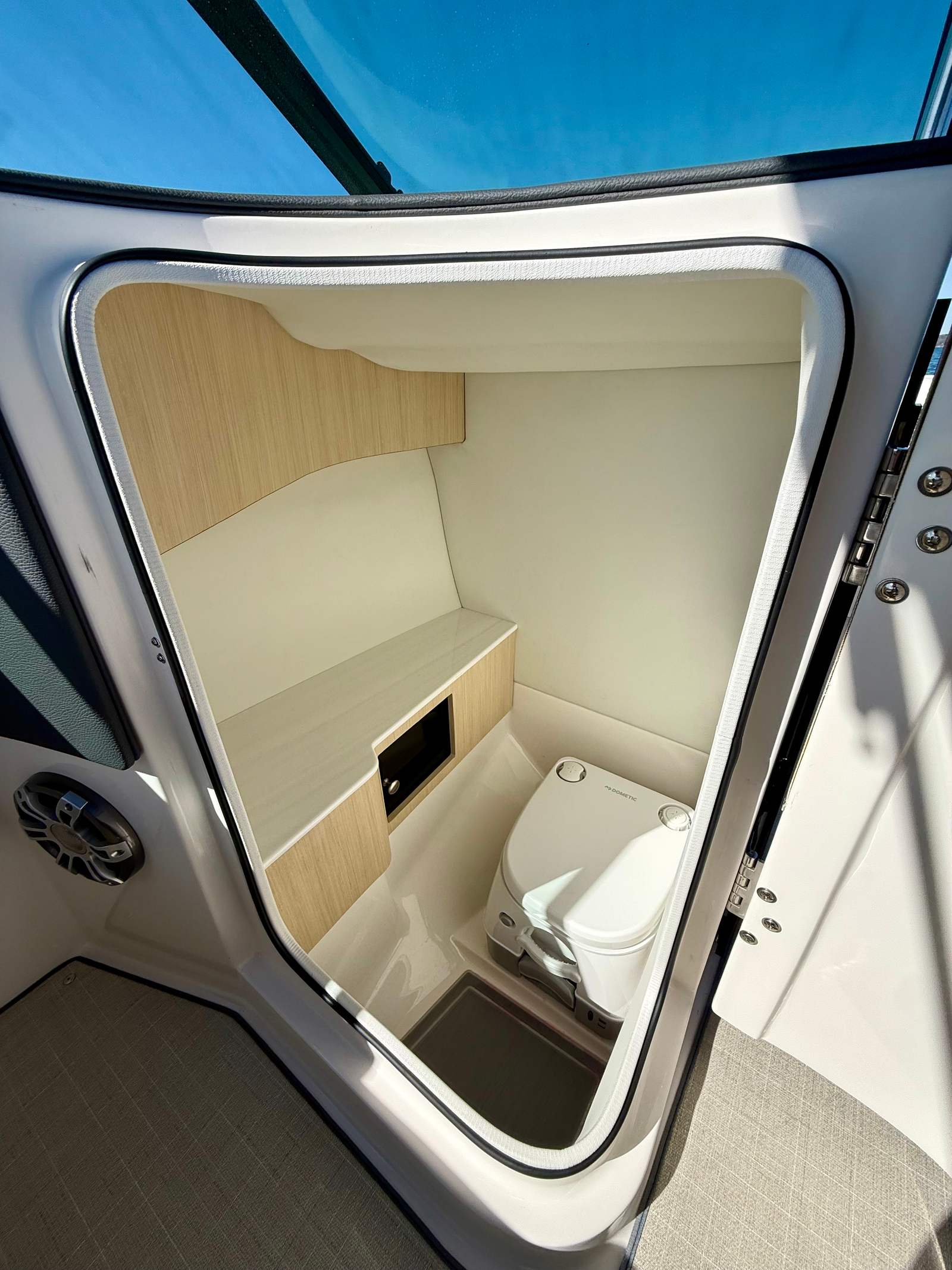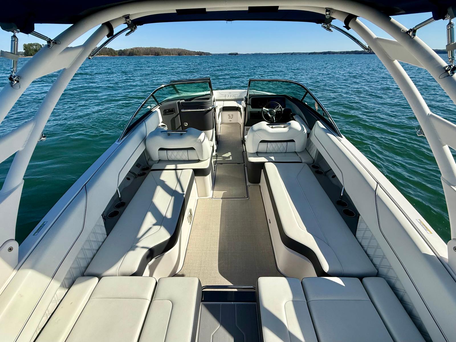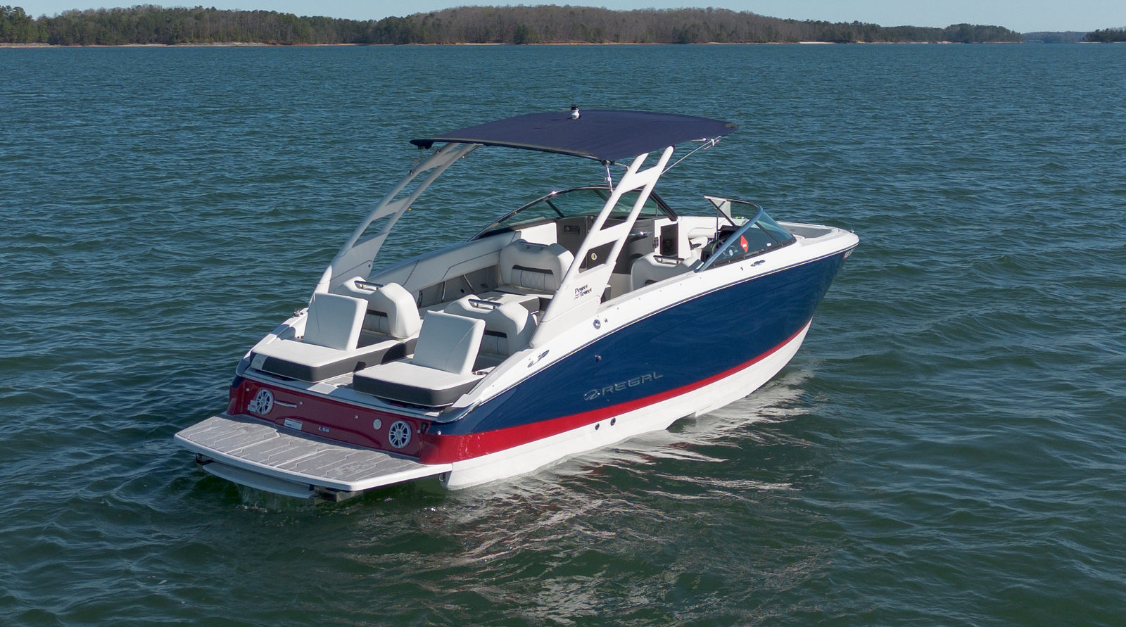 The striking Mediterranean Blue, Flame Red, and Tahiti White exterior is complemented by a Titanium interior, creating a bold and modern look. The spacious cockpit with wraparound seating makes entertaining easy, while the large swim platform and transom access keep water activities simple and fun. Regal’s thoughtful design and FasTrac hull combine comfort, style, and efficient handling, giving you a premium boating experience in a 26 plus foot platform.