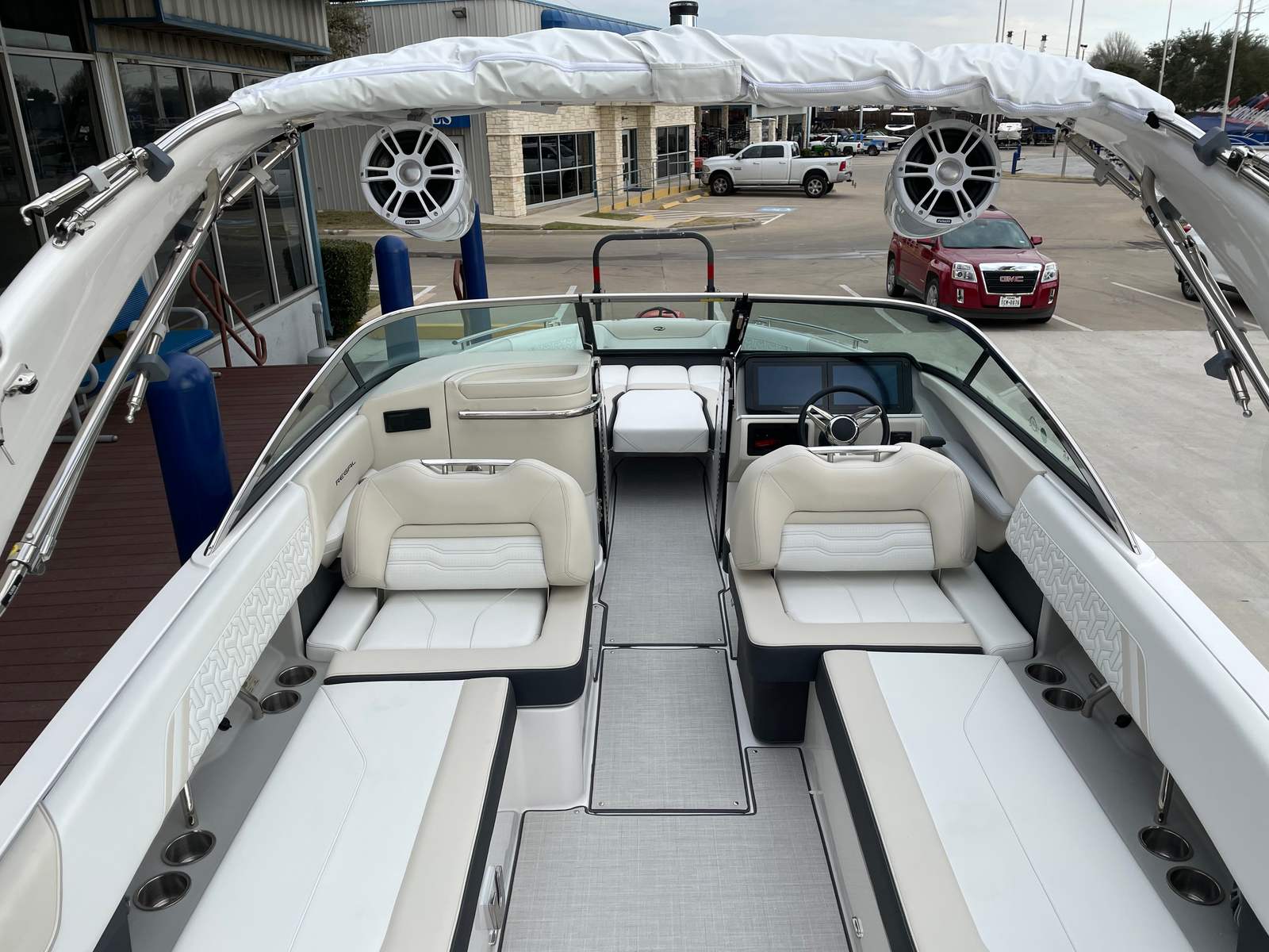 The 2025 Regal LS6 is a testament to modern boat design, offering a sleek and sophisticated profile that commands attention at every marina. Measuring an impressive 26.33 feet in length, this bowrider provides ample space for friends and family to relax and enjoy the ride. The LS6’s contemporary lines and carefully crafted hull ensure not only a striking appearance but also a smooth, stable ride in a variety of water conditions. As a new model, this Regal boat for sale is in pristine condition, ready to deliver years of reliable service and aquatic fun.