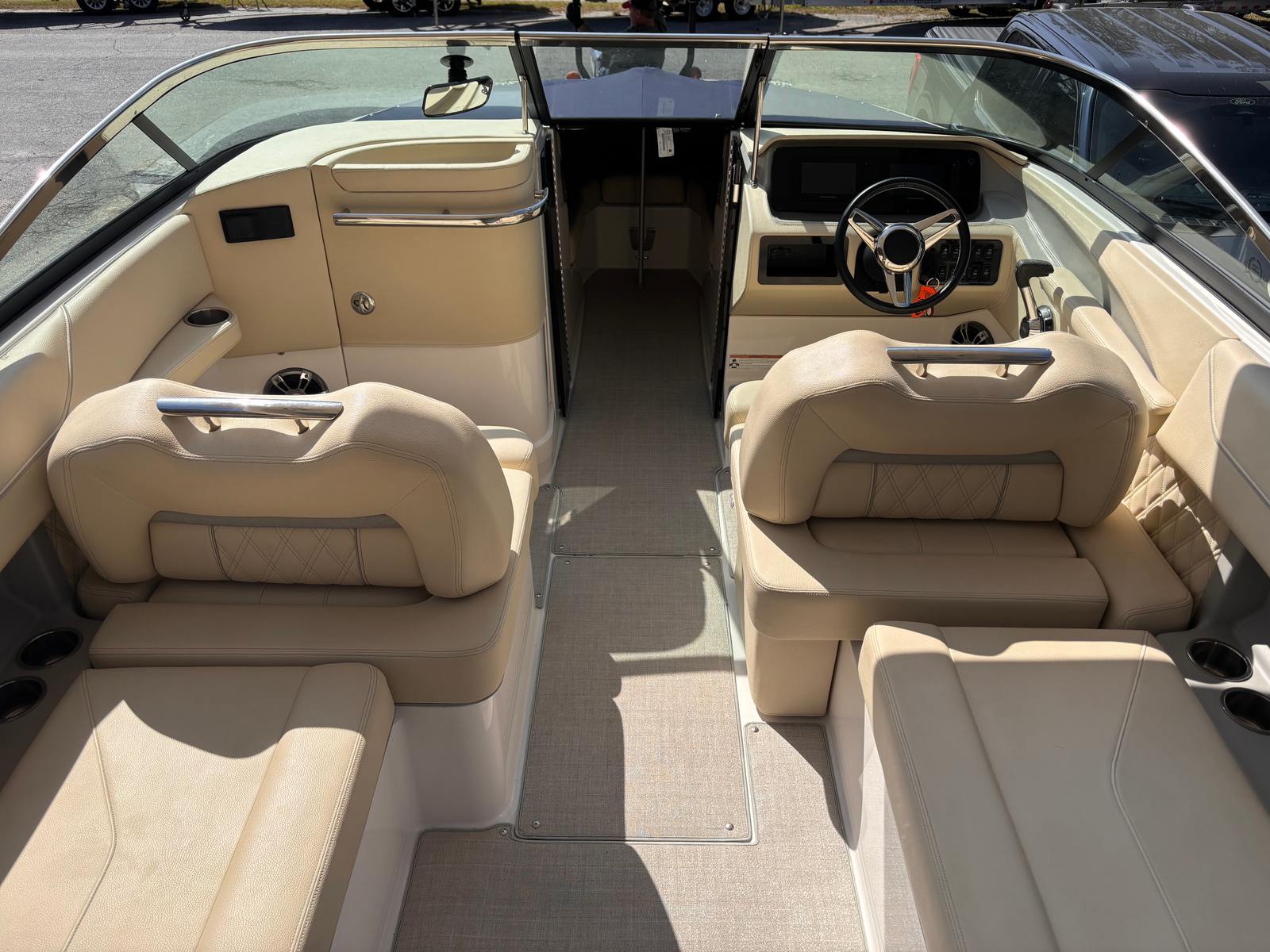 The Regal LS6 is packed with features that enhance both comfort and convenience. The spacious bow seating area invites guests to relax and soak up the sun, while the ergonomic cockpit layout ensures the captain has everything within easy reach. The LS6’s generous length of 26.33 feet provides ample room for socializing, lounging, and enjoying the water in style. The high-quality upholstery, stylish accents, and premium materials throughout the boat create an inviting atmosphere that elevates every outing.This used Regal boat for sale is designed with versatility in mind, making it perfect for a wide range of activities. The open bow layout allows for easy movement and plenty of seating, while the deep-V hull design ensures a smooth and stable ride even in choppier conditions. The LS6’s innovative storage solutions keep your gear organized and out of the way, so you can focus on making memories with your crew.