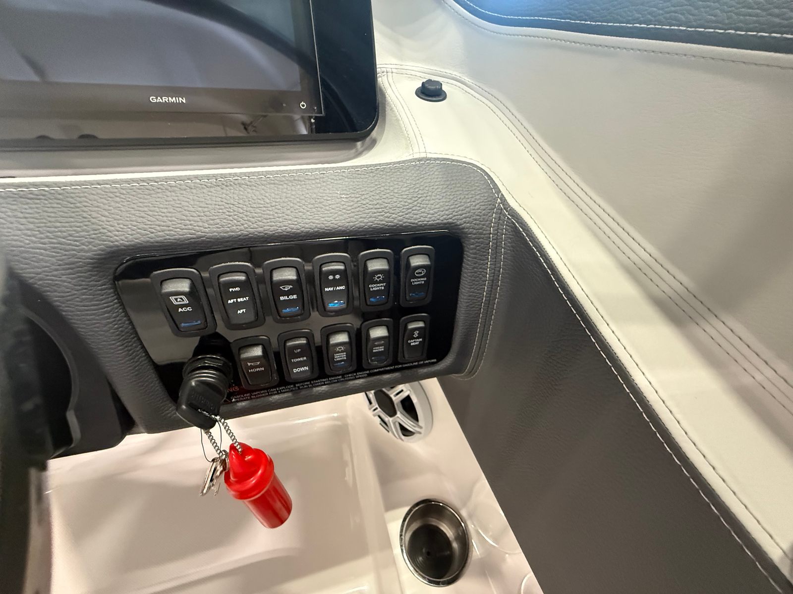 The 2026 Regal LX2 is loaded with features designed to enhance your time on the water. The hull’s Tahiti Beach White color, complemented by the Mediterranean Blue bootstripe, gives the boat a sophisticated and modern appearance. The Titanium interior offers a luxurious and comfortable environment for you and your guests, while the Bow & Cockpit Covers provide essential protection from the elements when the boat is not in use.One of the standout upgrades on this model is the White PowerTower Top, finished with sleek black canvas. This innovative feature not only adds to the boat’s visual appeal but also provides shade and shelter, allowing you to enjoy your time on the water regardless of the weather. The dual battery switch with tray and cables ensures reliable power management, so you can focus on fun without worrying about running out of juice. Every detail, from the color scheme to the advanced steering system, has been carefully selected to deliver a premium boating experience.