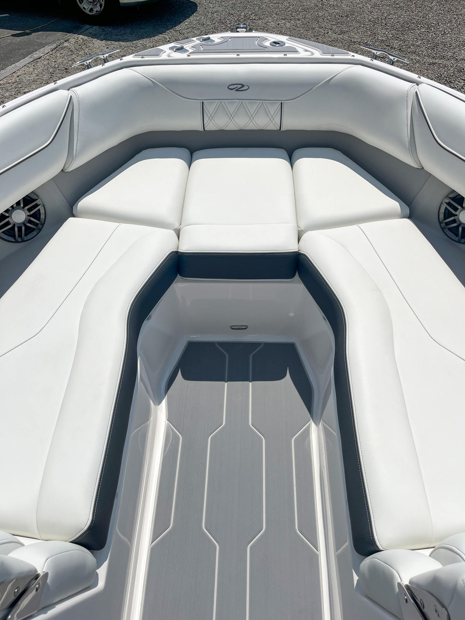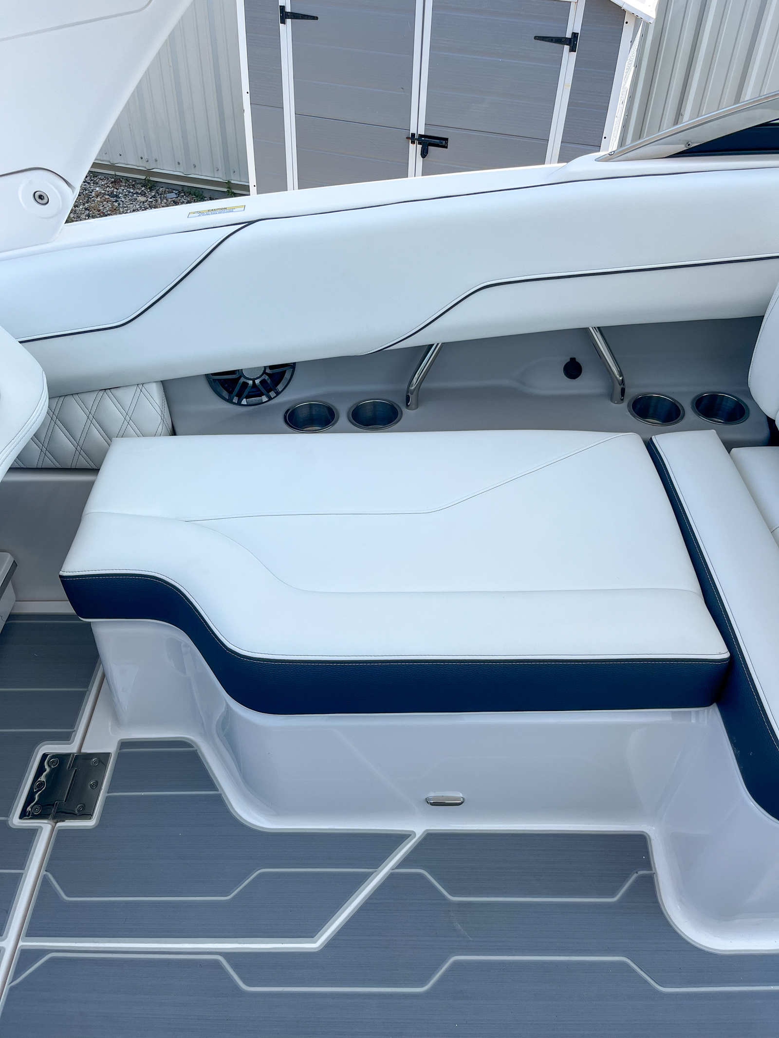The Regal LX4 is designed with practicality in mind, making ownership a breeze. The bow walk-thru doors allow easy movement throughout the boat, enhancing safety and accessibility for all passengers. Docking lights and fender clips simplify the process of mooring, ensuring you can dock with confidence even in challenging conditions. Ample storage options mean you can bring along all your gear, from water toys to picnic supplies, without sacrificing space or comfort. The efficient engine and hull design help keep fuel costs manageable, so you can spend more time enjoying the water and less time worrying about refueling. The dual Garmin 943XS displays and B60 transducer provide peace of mind, whether you’re navigating unfamiliar waters or seeking out the best fishing spots.