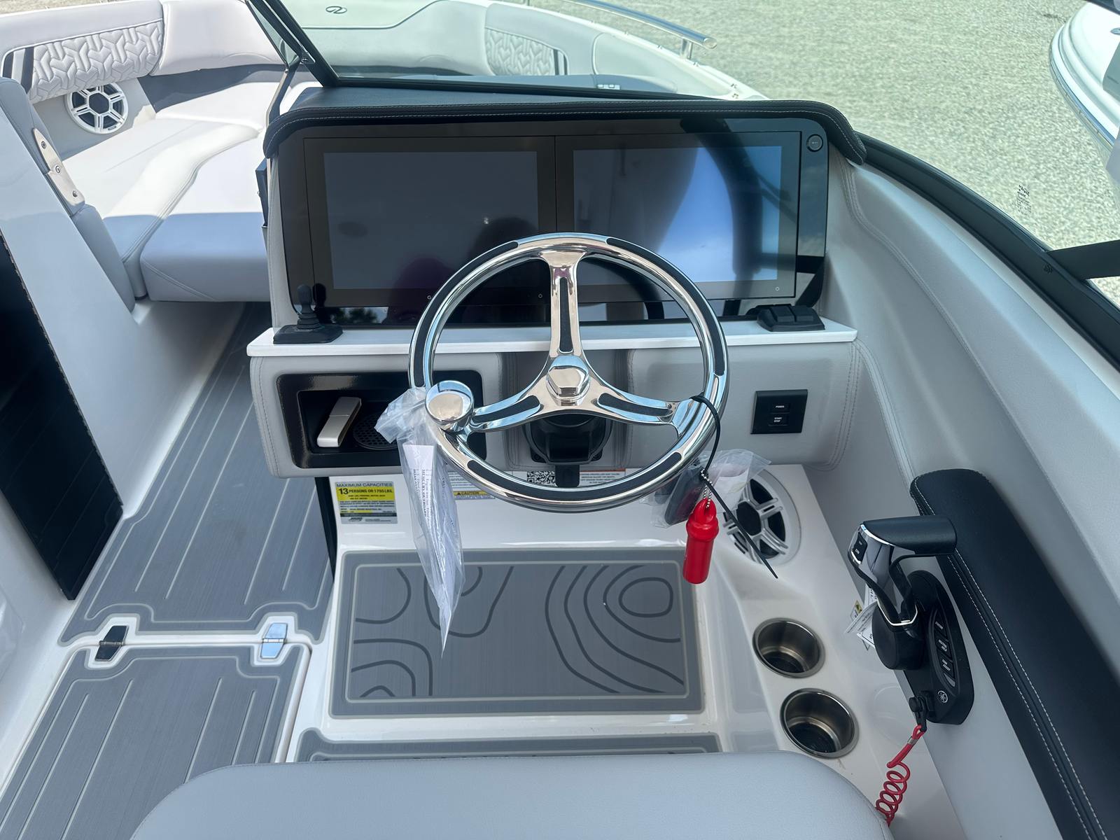 The 2026 Regal LX4 is loaded with premium features that elevate your boating experience. The hull and bottom are finished in the eye-catching Tahiti Beach White, complemented by a bold black bootstripe and matching black canvas for a sophisticated, modern look. Bow and cockpit covers provide protection from the elements, ensuring your boat stays pristine and ready for adventure.Step aboard and you will immediately notice the luxurious SeaDek cockpit sole and swim platform, offering superior comfort, traction, and style underfoot. The digital switching system streamlines onboard controls, allowing you to manage lighting and other systems with ease. A convenient battery charger keeps your power systems ready for action, so you can focus on enjoying your time on the water.