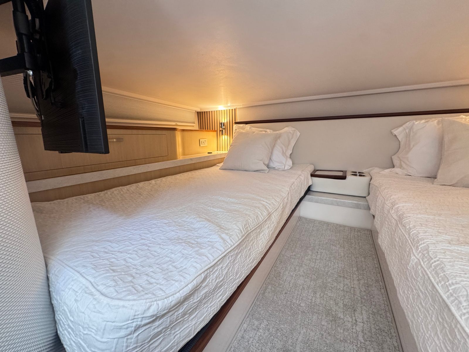 The Regal LX43 is designed with practicality in mind, making ownership as enjoyable as it is effortless. Its generous length offers ample storage for all your gear, ensuring that everything you need for a day on the water is always within reach. The yacht’s thoughtful layout makes docking and maneuvering a breeze, even in busy marinas or tight spaces. The efficient design of the twin Mercury 600 Verado engines not only delivers impressive power but also helps optimize fuel usage, allowing you to spend more time enjoying the water and less time refueling.Whether you are planning a weekend getaway, a day of water sports, or a relaxing cruise with loved ones, the LX43 adapts to your needs with ease. Its versatile design makes it the perfect companion for a wide range of activities, from entertaining guests to exploring hidden coves and scenic coastlines.