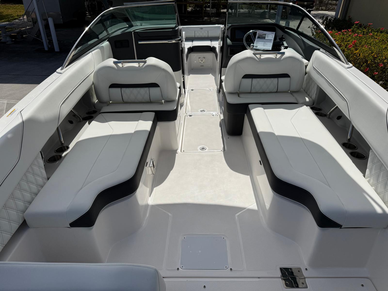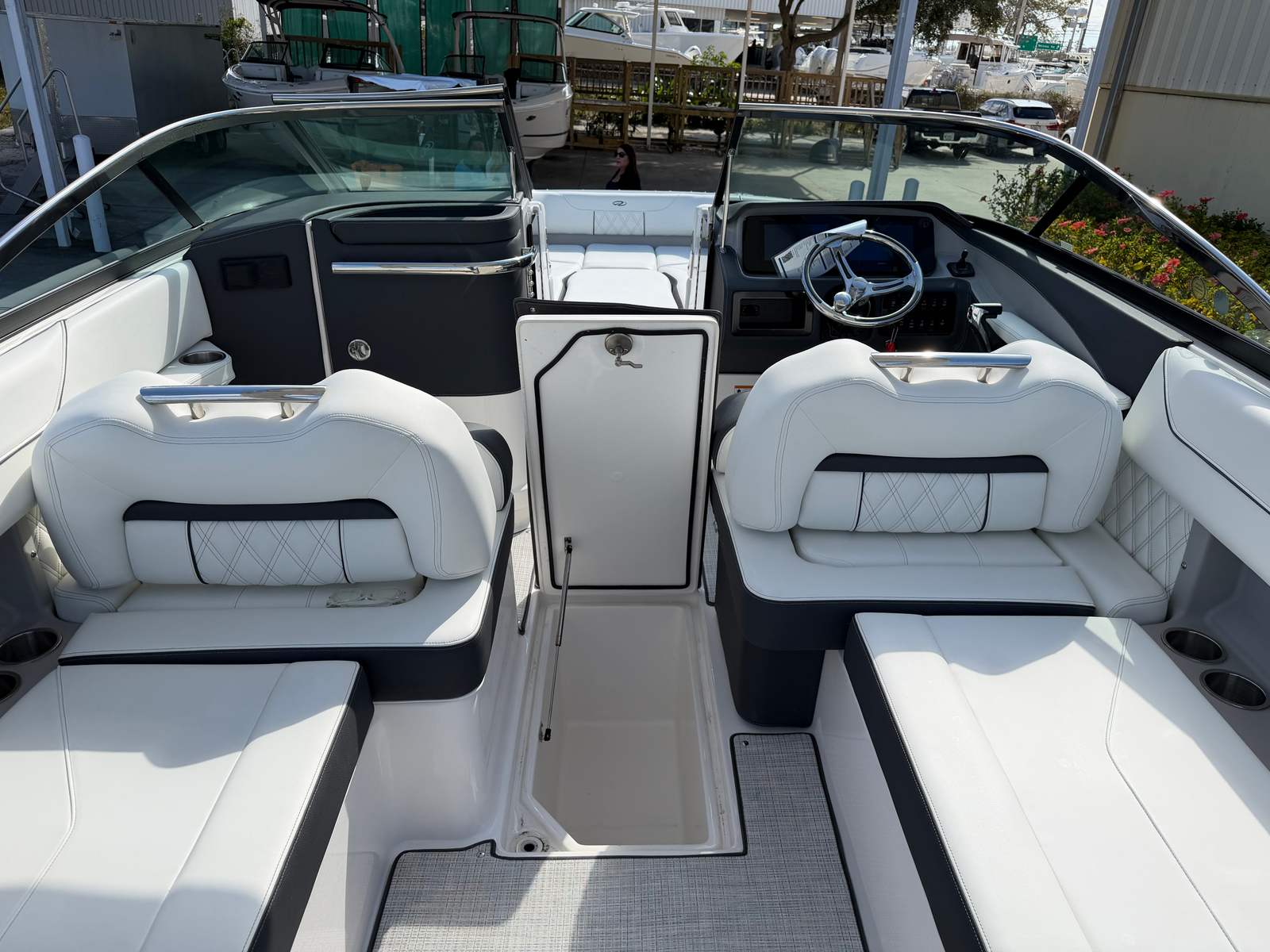 Practicality is at the core of the Regal LX6 Bowrider’s design. The dual battery switch and onboard charger make it easy to manage your boat’s electrical systems, ensuring you have reliable power for navigation, entertainment, and safety equipment. The protective covers help maintain the boat’s pristine condition, reducing maintenance and preserving its value over time.The LX6’s manageable length of 26.25 feet strikes the perfect balance between spaciousness and ease of handling. Docking and maneuvering are straightforward, even for those new to boating, while the efficient Yamaha V6 engine helps you make the most of your time on the water without worrying about excessive fuel consumption. The thoughtful layout provides convenient storage solutions for your gear, water toys, and personal items, keeping the deck clutter-free and organized.