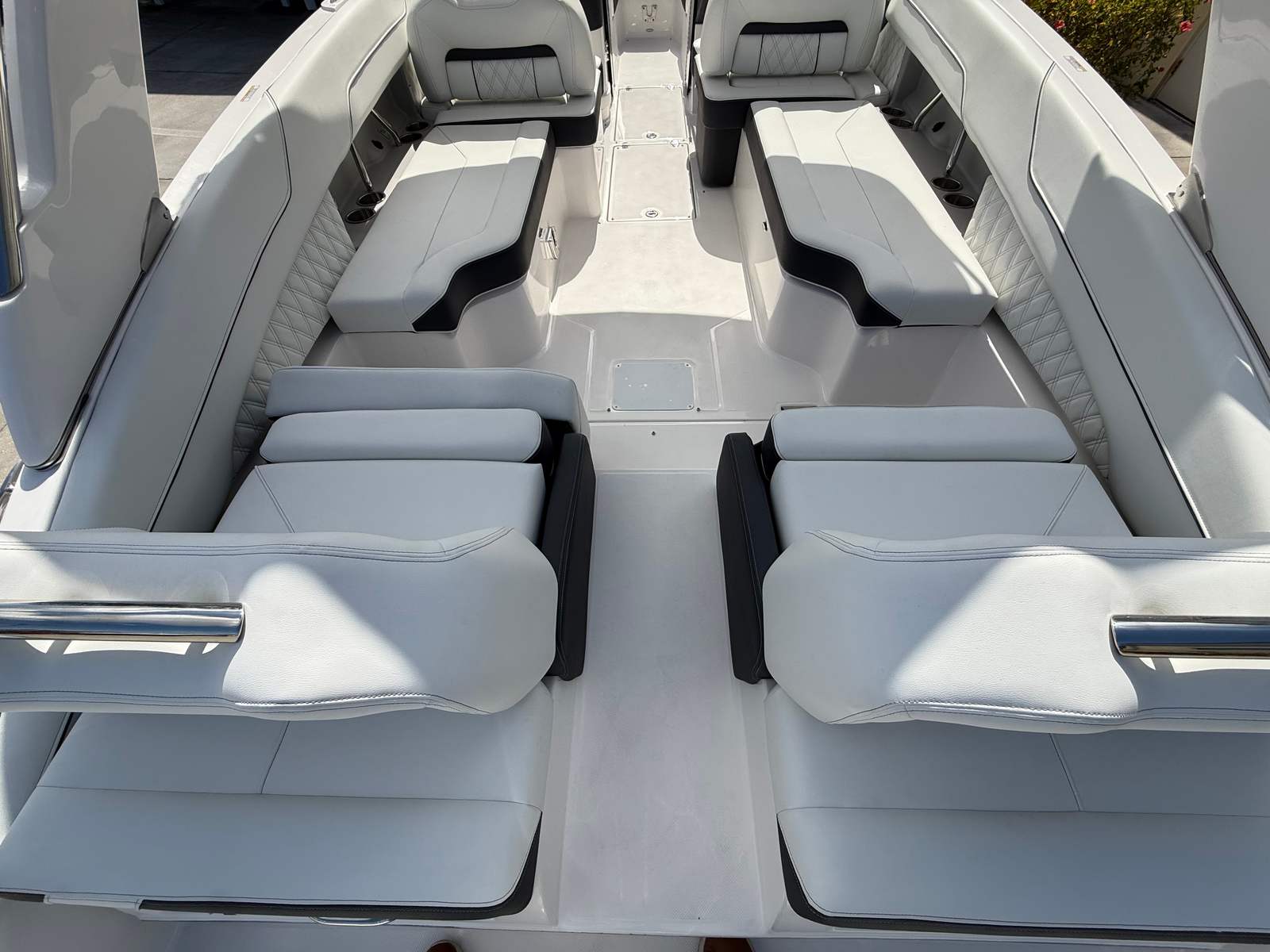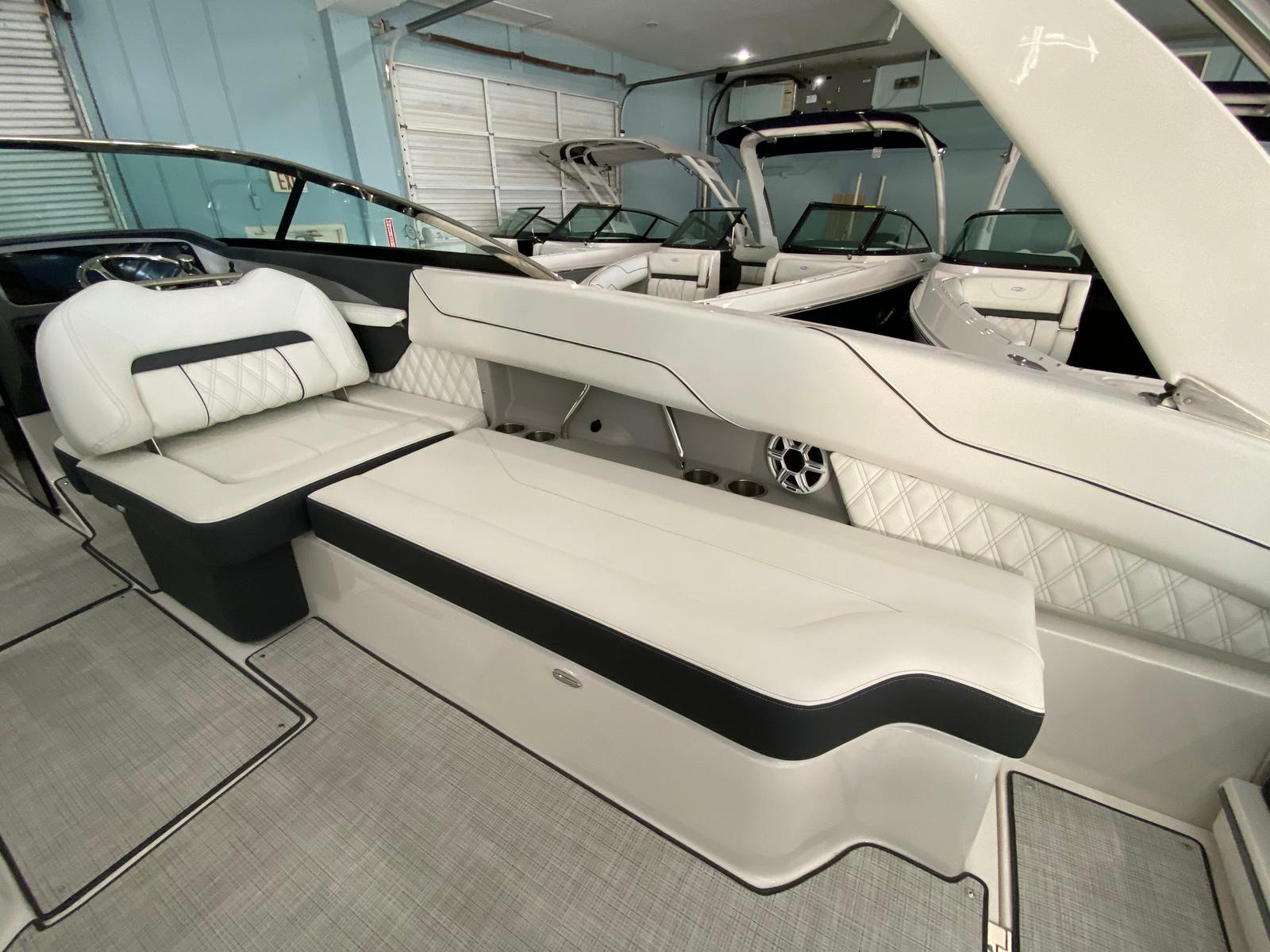 At the heart of the Regal LX6 is a robust Yamaha V6 350HP engine, delivering impressive horsepower for exhilarating rides and smooth cruising. Whether you are gliding across calm lakes or powering through coastal waves, the LX6 offers responsive handling and reliable performance. The single-engine configuration simplifies operation and maintenance, making it an ideal choice for both seasoned boaters and newcomers alike. With 350 horsepower at your command, you can expect thrilling acceleration, confident towing capabilities for water sports, and efficient cruising for extended outings.