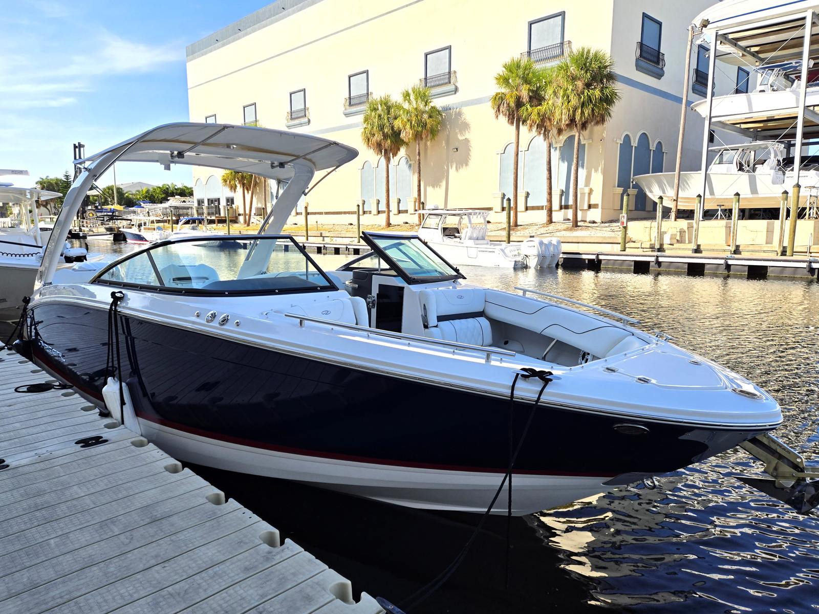 Owning the Regal LX6 Bowrider means embracing a lifestyle filled with excitement, relaxation, and social connection. The spacious layout is perfect for hosting family and friends, with plenty of room to stretch out, sunbathe, or engage in lively conversation. The ergonomic seating and thoughtfully designed cockpit make every journey comfortable, whether you’re cruising at sunset or anchoring for a swim.The LX6’s vibrant color scheme and premium finishes create an inviting atmosphere that enhances every moment on board. The teak cockpit table is ideal for sharing meals, playing games, or enjoying drinks, while the transom shower adds convenience after a dip in the water. The advanced battery system and bow thruster simplify operation, making this Regal boat for sale a joy to own and operate.