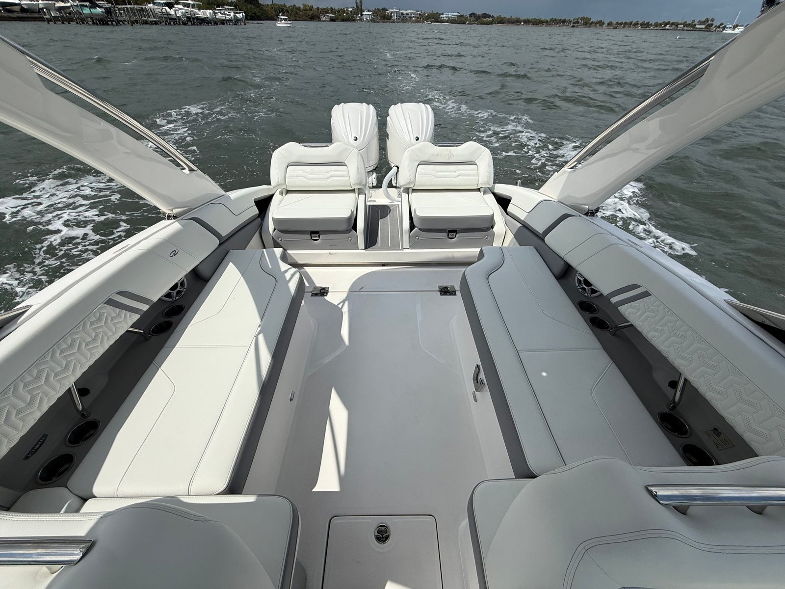 The Regal LX9 Ultimate is designed with practicality in mind, making ownership as enjoyable as it is effortless. The twin Yamaha engines not only deliver impressive power but also offer reliability and efficiency, so you can spend more time on the water and less time worrying about maintenance. The bow and cockpit covers protect your investment from sun and weather, while the battery charger ensures your systems are always ready to go.Docking and maneuvering are simplified by the integrated steering and bow thruster, making it easy to navigate marinas or tight docking spaces. The anchor windlass with rope and chain provides secure anchoring with minimal effort, giving you peace of mind when you want to stop and enjoy your favorite spot. The inclusion of an electric toilet and pressure water package means you can comfortably host guests or enjoy extended trips without compromise.