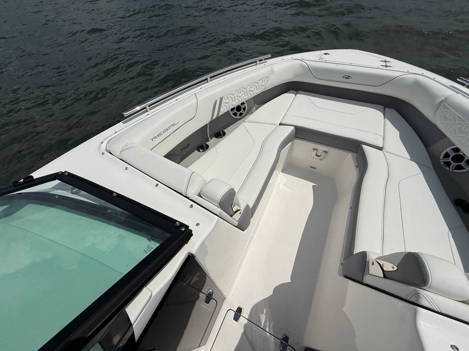 The 2026 Regal LX9 Ultimate shines in a variety of scenarios, making it the perfect choice for families, friends, and boating enthusiasts alike. Imagine setting out for a day of water sports, with the powerful twin Yamaha engines delivering the speed and agility you need for wakeboarding or tubing. Picture leisurely cruises along the shoreline, where the spacious bowrider design allows everyone to relax and soak up the sun.For those who love to entertain, the LX9 Ultimate offers ample seating and amenities for hosting unforgettable gatherings on the water. The transom shower and electric toilet ensure comfort for all, while the anchor windlass makes it easy to stop and enjoy a swim or picnic in your favorite cove. Whether you’re planning a weekend getaway, a sunset cruise, or a day of fishing, this Regal boat for sale adapts to your every need, delivering performance, comfort, and style in equal measure.
