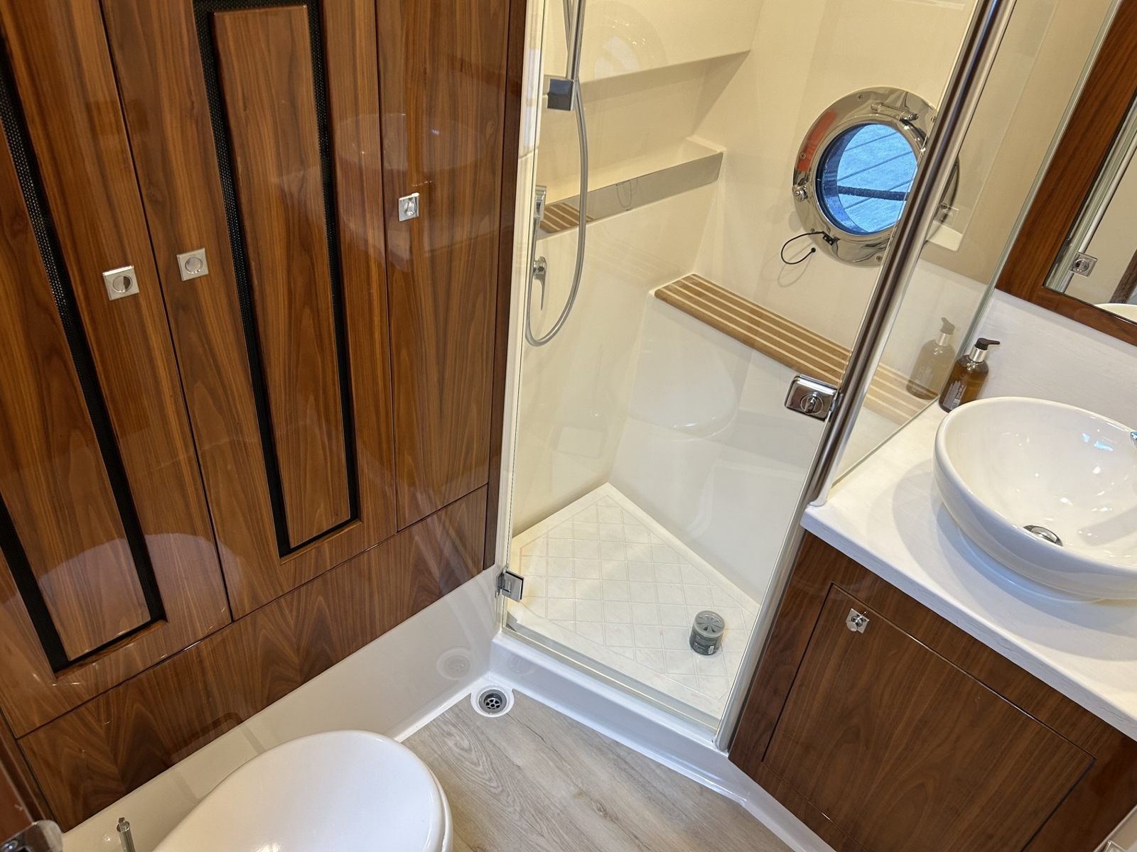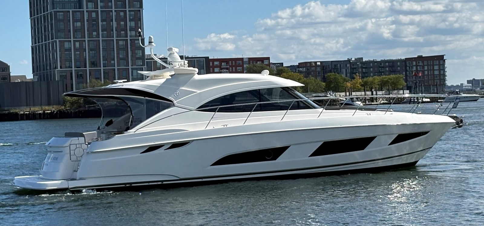 Powered By Twin Volvo IPS 800 D8’s (600 HP ea.) w/ Only 340 Hours! * Inc. ACP, Helm Joystick * White Hull Color * Garmin GMR 424 XHD Open Array Radar 5” * Navigation Screens (16”) Upgrade * Portside & Starboard Side Cockpit Joysticks * FLIR Night Vision Camera * Cameras: Engine, Awning, Anchor * Muir Windlass * Tender Garage w/Mercury RIB Tender & Yamaha 8 HP * Additional Transom Fixed Cleats * Extended Swim Platform * Underwater Lights * Fuel Filters/ Water Separator (DUAL) * Fresh Water Backup Pump * Upgraded Upholstery * Anchor Upgrade (S.S. Ultra) * Forward Deck Sunpad * Foredeck Lighting * Helm Electric Sunroof * Cockpit Awning * Cockpit Wet Bar w/ Grill, Ice Maker * Teak Laid Cockpit Floor * Galley w/ Dishwasher * U-Shaped Dinette * Galleyware Package * Walnut Gloss Interior Finish * Splendid Washer/Dryer Combo * Master TV, Aft Stateroom 24” LED TV * Master: King Walk-Around Innerspring Berth * Ensuite w/ Separate Shower Stall * Second Stateroom: Convertible Twins, Another Single * Second Bathroom/ Day Head * Professionally Maintained * OFF-SITE, BY APPOINTMENT * @DN