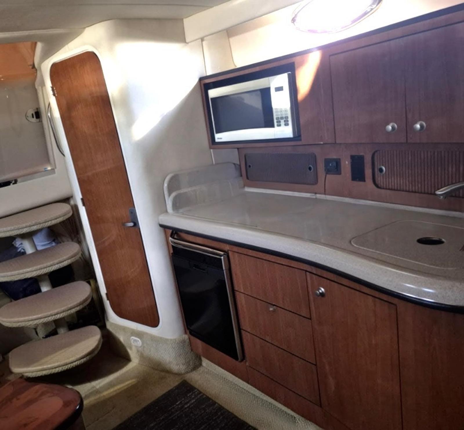 This Sea Ray 320 Sundancer shines in a variety of scenarios, making it a versatile choice for any boating lifestyle. Imagine setting out for a weekend getaway with family, enjoying the spacious seating and amenities as you cruise to your favorite anchorage. Host unforgettable gatherings with friends, taking advantage of the wet bar and ample seating to create lasting memories on the water.For those who love water sports, the extended swim platform and easy access to the water make this cruiser boat for sale an excellent base for swimming, tubing, or simply relaxing by the shore. Its comfortable layout and practical features also make it a great option for longer excursions, allowing you to explore new destinations in style and comfort.
