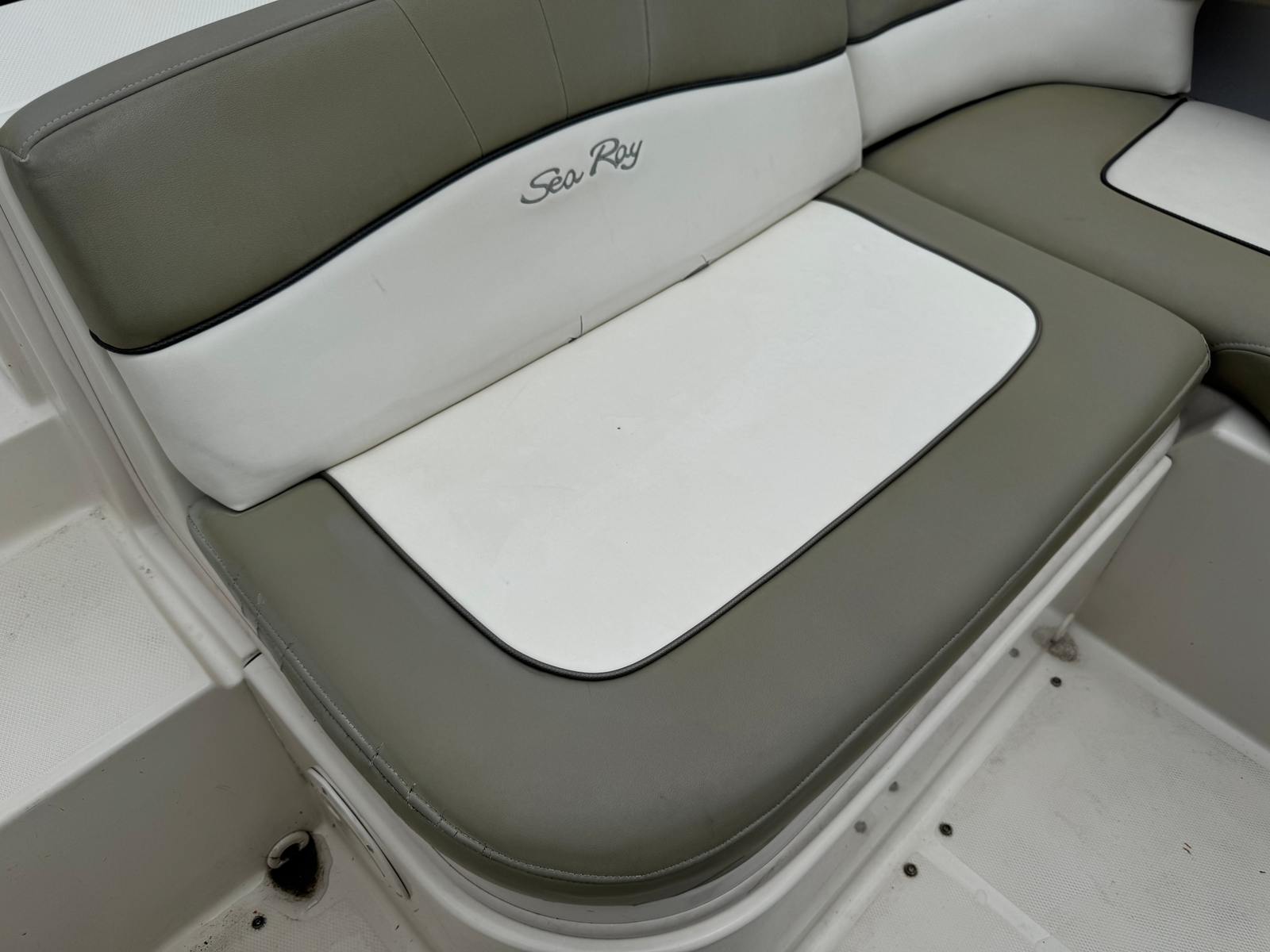 The 220 Sundeck makes room for 10 riders to stretch out in the lounge seating. The bow seating has its own boarding ladder and shower, and room for the table to set up when needed. The cockpit has L-shaped seating as well as a bolstered Captain's chair. Access to the head is in the privacy compartment in front of the passenger seat.