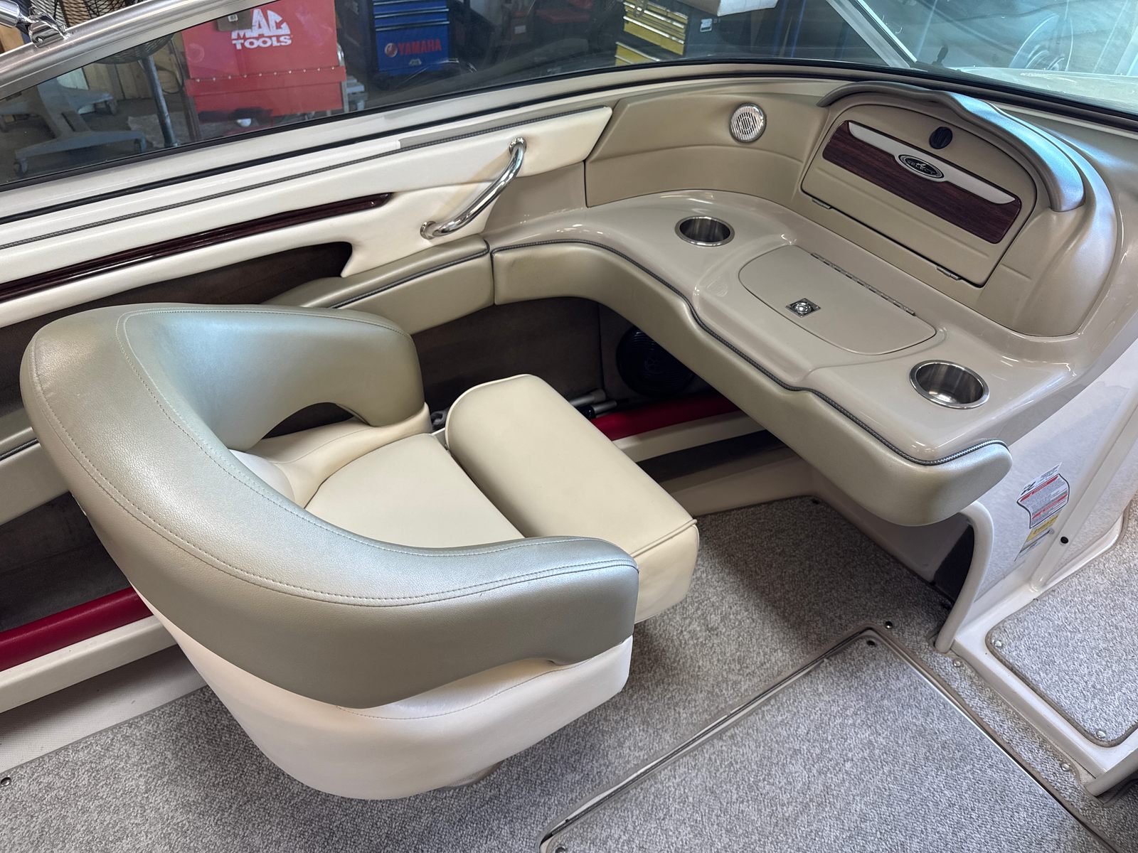 Powering this Sea Ray boat for sale is a robust single engine delivering 220 horsepower, with 599 engine hours logged. This setup provides a smooth and responsive ride, whether you are cruising along the shoreline, towing water toys, or simply enjoying a leisurely day on the lake. The 220-horsepower engine ensures you have the power needed for a variety of activities, from spirited runs across open water to gentle, fuel-efficient cruising. The engine’s proven reliability and performance make this pontoon boat a standout choice for those who value both excitement and dependability.