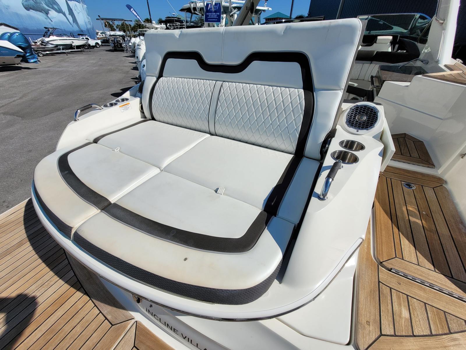 Under the hood, the Sea Ray SLX 350 is powered by twin engines, delivering a combined 760 horsepower. This impressive power ensures thrilling acceleration and smooth cruising, whether you are slicing through open water or navigating busy marinas. The dual-engine setup not only enhances performance but also provides added reliability and maneuverability, making docking and handling a breeze. With this level of horsepower, the SLX 350 offers a dynamic boating experience that will satisfy even the most enthusiastic water sports lovers.