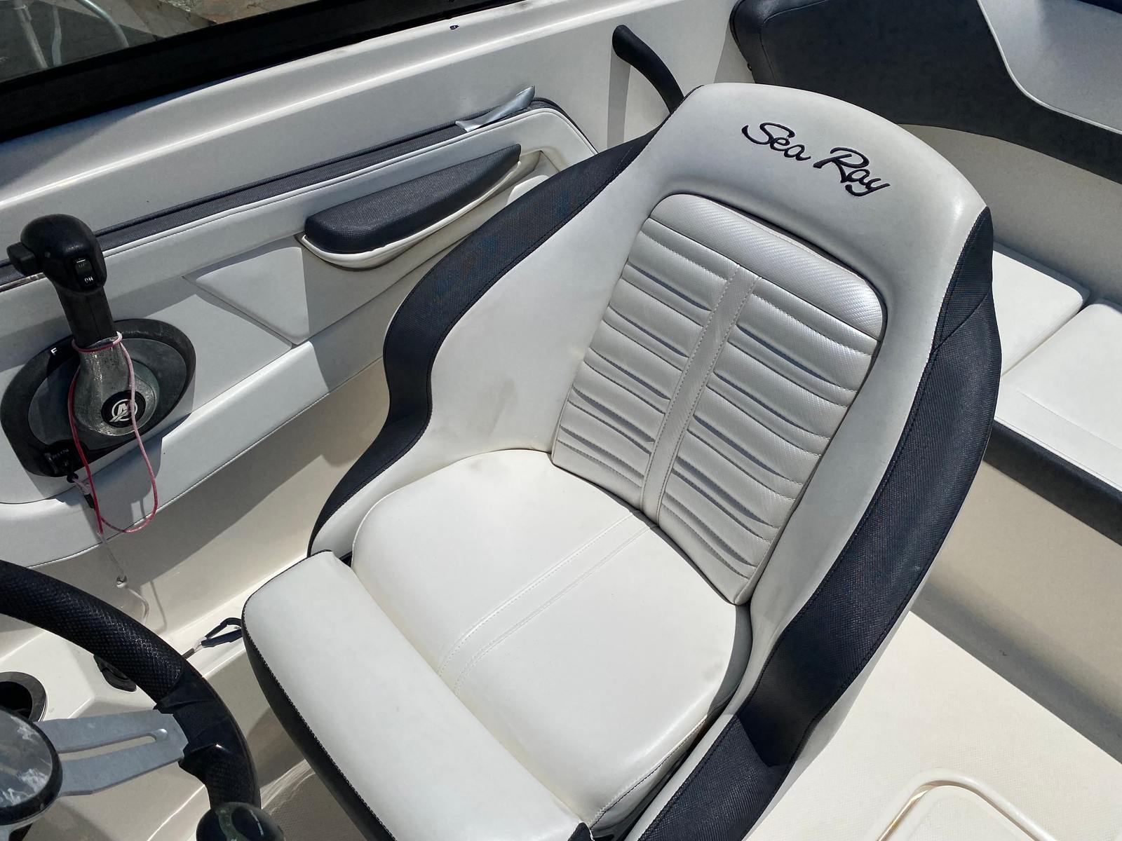 The Sea Ray SVX 19 comes equipped with features designed to enhance your boating experience. As a Bowrider, it offers an open and inviting layout, perfect for socializing and soaking up the sun. The spacious bow seating area provides plenty of room for guests to relax, while the ergonomic helm ensures comfortable control for the captain. The 19-foot length allows for ample deck space without sacrificing agility, making it easy to navigate tight marinas and busy waterways.This used Sea Ray boat for sale is built with quality materials and craftsmanship, ensuring durability and longevity. The thoughtful design includes convenient storage compartments for your gear, life jackets, and water toys, helping you keep the deck clutter-free and organized. The SVX 19’s sleek exterior and modern finishes make it a standout on the water, while its practical layout ensures everyone on board enjoys maximum comfort.