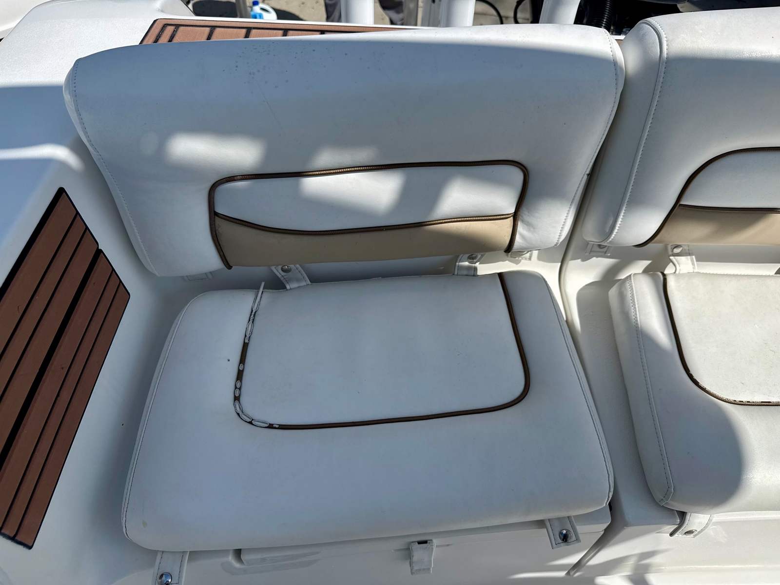 At the helm, you’ll find a Garmin 12-inch navigation display with sonar, providing clear, easy-to-read charting and fish-finding capabilities, along with a Garmin dome radar to enhance visibility and safety when navigating in low-light or changing weather conditions. The boat is also equipped with a jackplate, allowing for improved performance, shallow-water capability, and fine-tuned trim while underway.