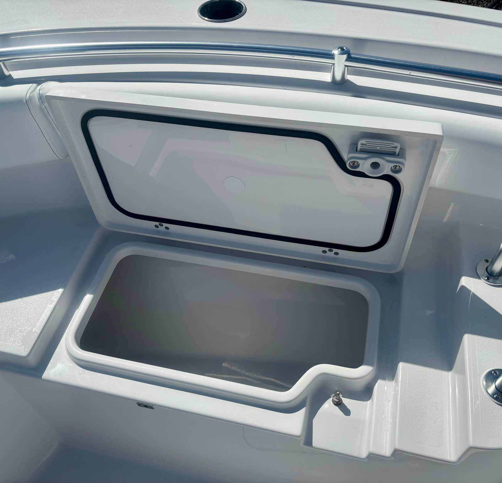 Step aboard the Heritage 231 and discover a world of premium features designed to enhance your boating experience. The fiberglass console with integrated footrest and storage offers both comfort and practicality, providing a secure place for your gear while keeping everything within easy reach. The fiberglass hard top, complete with LED lighting, ensures you’re protected from the elements while adding a touch of luxury to your outings. The hardtop underside is finished in Harbor Haze Blue, creating a cohesive and visually appealing look.White powder coating throughout the boat adds durability and a clean, modern finish, while the Serenity Sileather Icecap White upholstery offers plush seating that’s both stylish and easy to maintain. The premium dual chair leaning post with flip-up bolsters provides flexible seating options, allowing you to switch between sitting and standing with ease. Entertainment is taken to the next level with the Garmin Apollo™ RA670 stereo featuring SportTuN, delivering crisp, immersive sound for your favorite tunes. The Edson 13” stainless steel comfort grip steering wheel with PowerKnob ensures precise handling and effortless control, making every journey smooth and enjoyable.