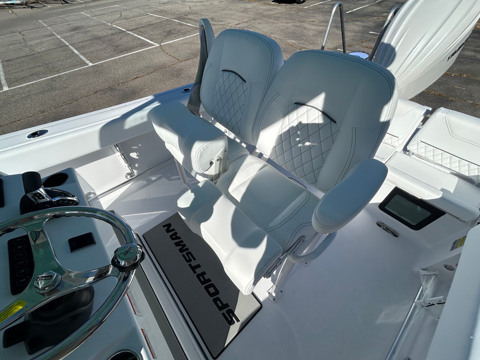 The 2026 Sportsman Heritage 231 is packed with high-end features that enhance both functionality and aesthetics. The hull side is finished in a striking Sea Glass Green, complemented by a classic white hull bottom for a timeless look. The fiberglass console is thoughtfully designed with a footrest and integrated storage, ensuring comfort and convenience at the helm.A standout feature is the hard top with integrated LED lighting, providing shade and illumination for day and night excursions. The hardtop underside is also finished in Sea Glass Green, adding a touch of elegance and continuity to the boat’s design. White powder coating on the metalwork not only enhances durability but also contributes to the boat’s clean, modern appearance.The Serenity Sileather Icecap White upholstery offers a luxurious seating experience, combining style with easy maintenance. The premium dual chair leaning post with flip-up bolsters provides versatile seating options, allowing you to switch between standing and sitting with ease. At the helm, a Garmin 12-inch GPS screen with built-in Wi-Fi ensures you have access to advanced navigation and connectivity features, while the standard Garmin Apollo RA670 stereo with SportTuN delivers high-quality sound for your favorite music on the water.