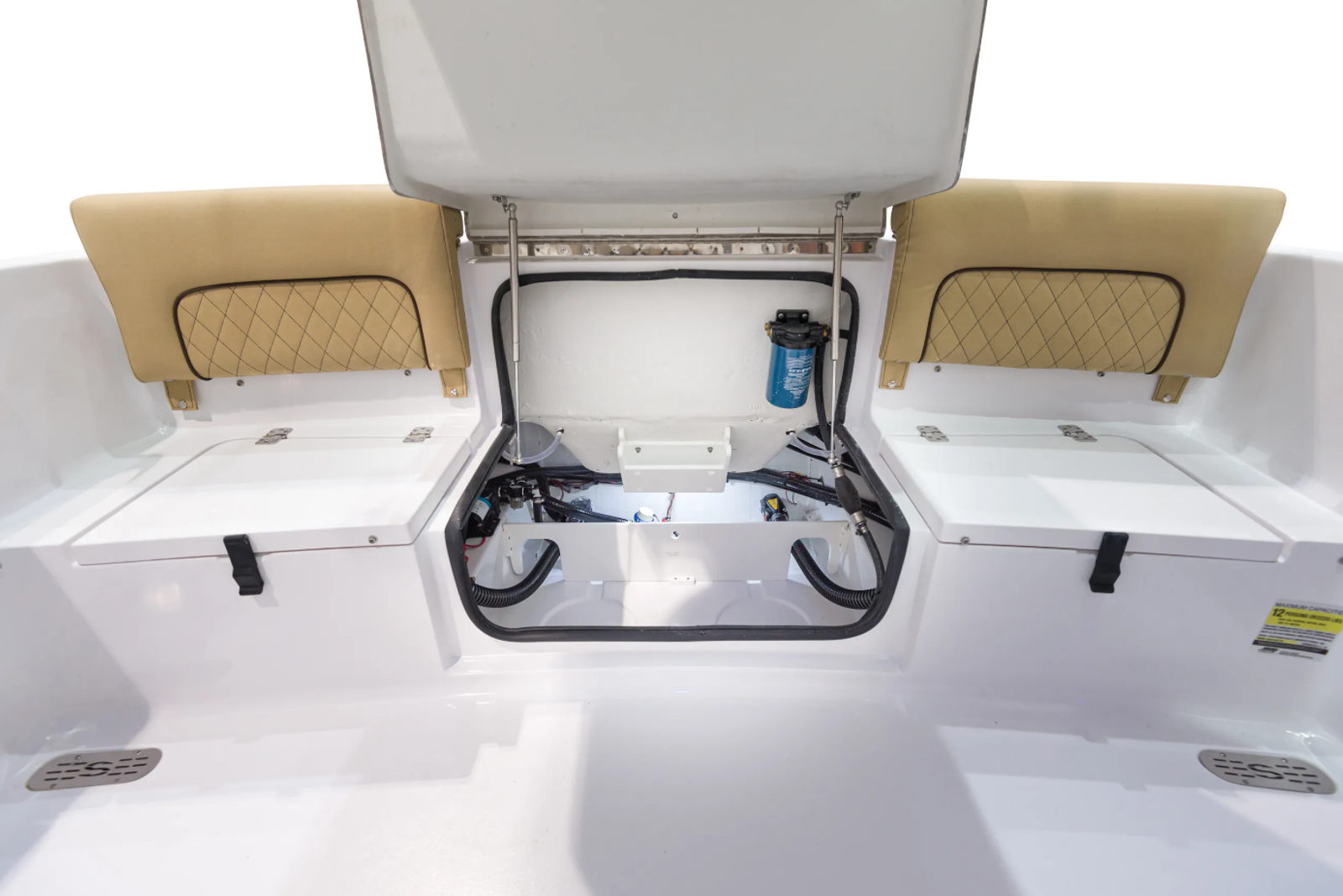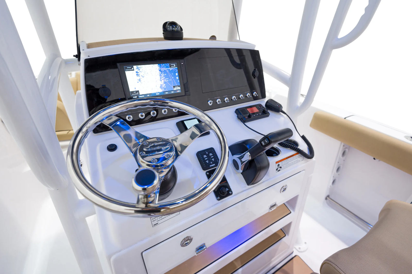 The Sportsman Heritage 231 is as practical as it is fun. The thoughtfully designed console and storage solutions keep your gear organized and accessible, reducing clutter and maximizing deck space. The efficient Yamaha F300XSB engine not only delivers impressive power but also offers fuel efficiency, helping you spend more time on the water and less time at the pump.Docking and maneuvering are simplified by the boat’s responsive handling and well-balanced hull design, making it easy to navigate marinas and tight spaces. The integrated battery charger ensures your electronics and accessories are always ready for action, while the durable powder-coated hardware stands up to the rigors of saltwater and sun.