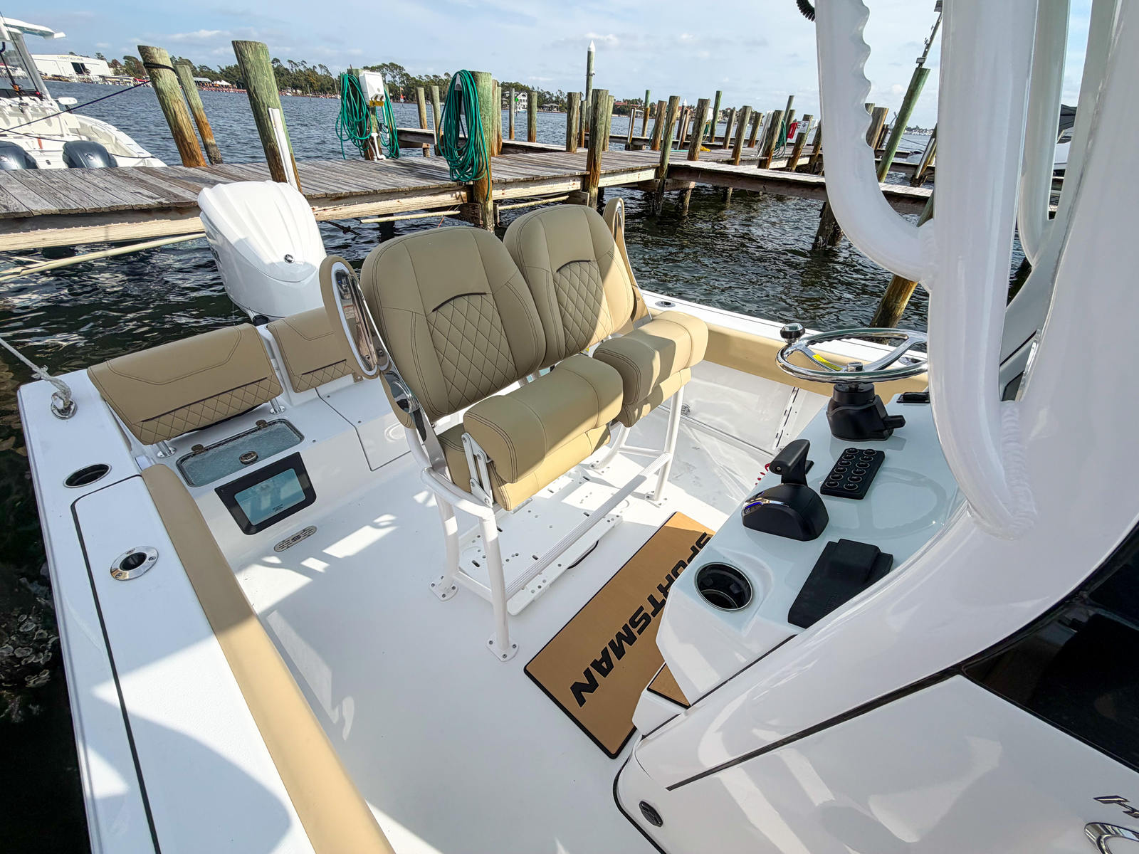 The 2026 Sportsman Heritage 231 is packed with premium features designed to enhance your time on the water. The white powder coating on the hardware and rails not only looks sharp but also offers added durability and corrosion resistance. Step aboard and you’ll be greeted by Coastal Beige upholstery, providing a comfortable and inviting environment for you and your guests. The Edson 13” stainless steel Comfort Grip steering wheel with PowerKnob ensures precise control and effortless maneuvering, even in challenging conditions.For those who value top-tier entertainment and navigation, this Center Console boat is equipped with a Garmin Fusion/JL Audio Ultra Premium DSP Upgrade, delivering crystal-clear sound and immersive audio experiences. The dual Garmin GPSMAP 1243xsv 12” screens offer advanced navigation, fish-finding capabilities, and intuitive controls, making every journey safer and more enjoyable. The ProMariner ProTournament Elite 3 Battery Charger (2-Bank) keeps your batteries charged and ready, so you can focus on fun without worrying about power.
