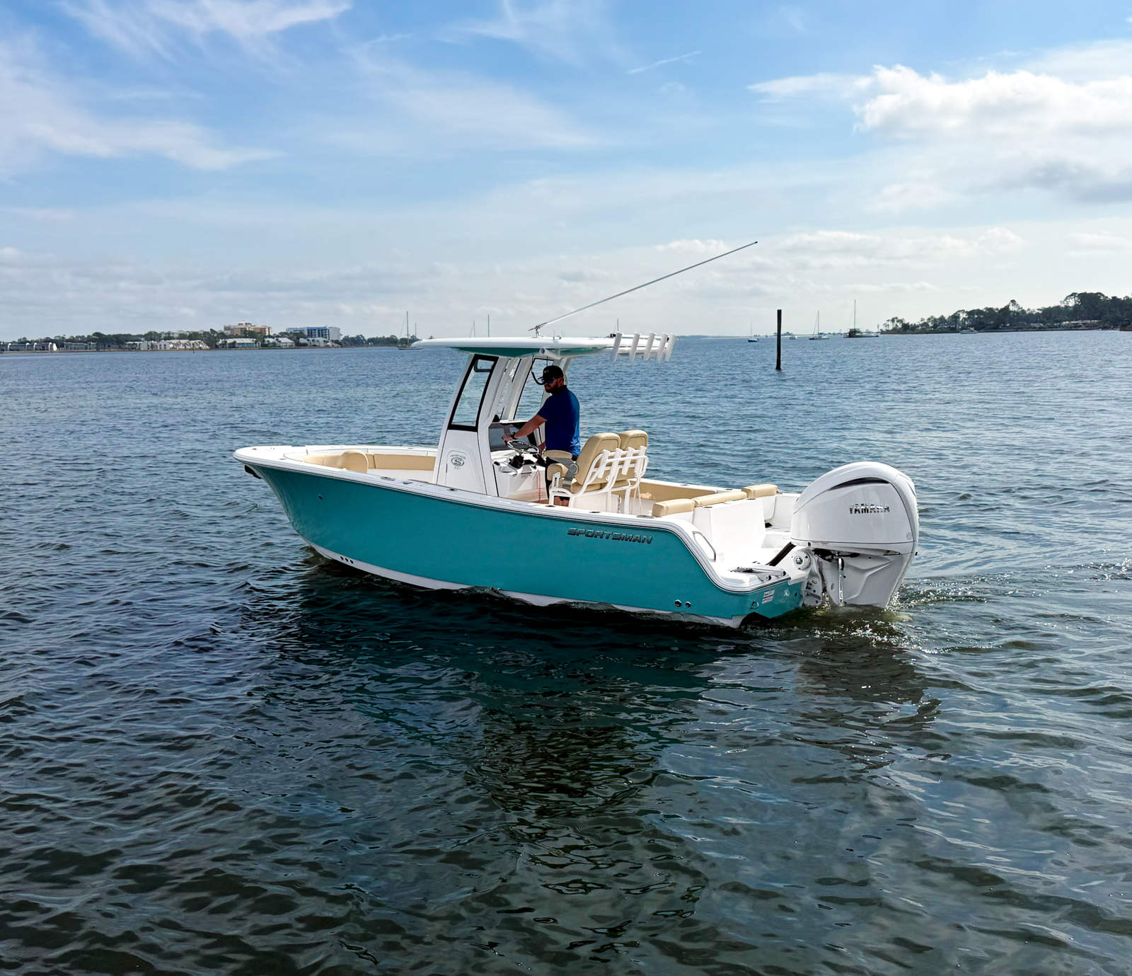 The 2026 Sportsman Heritage 231 is a 23-foot Center Console boat that perfectly balances size and functionality. Measuring just over 23 feet in length, this model offers ample space for friends and family while remaining nimble enough for easy handling and docking. The Heritage 231’s modern design is complemented by a Sea Glass Green hull side and a Snow White hull bottom, creating a striking visual presence on the water. The HardTop underside, also finished in Sea Glass Green, adds a touch of sophistication and ties the boat’s aesthetic together beautifully. As a new Sportsman boat for sale, this model represents the latest in innovation and craftsmanship from one of the industry’s most respected brands.