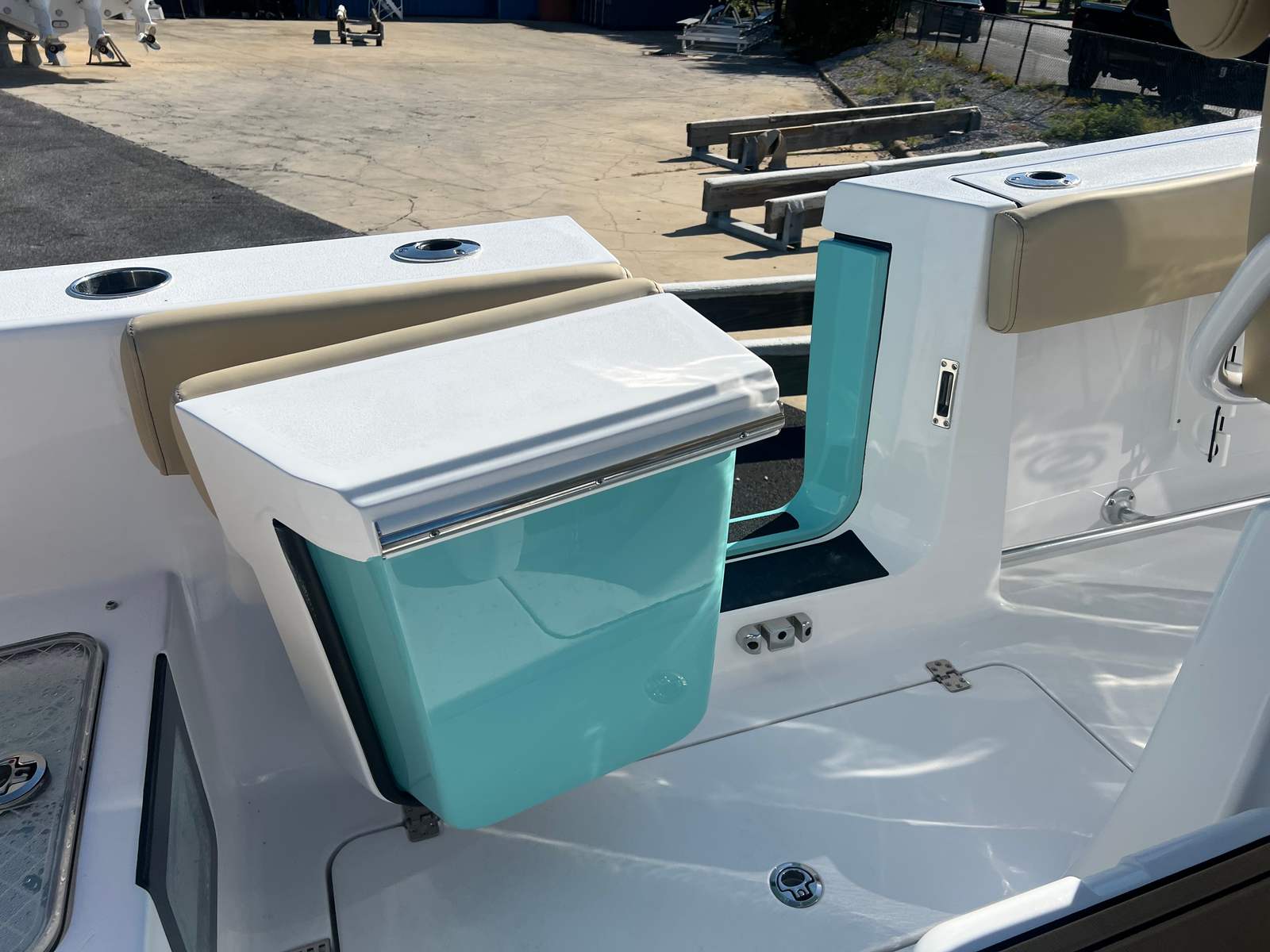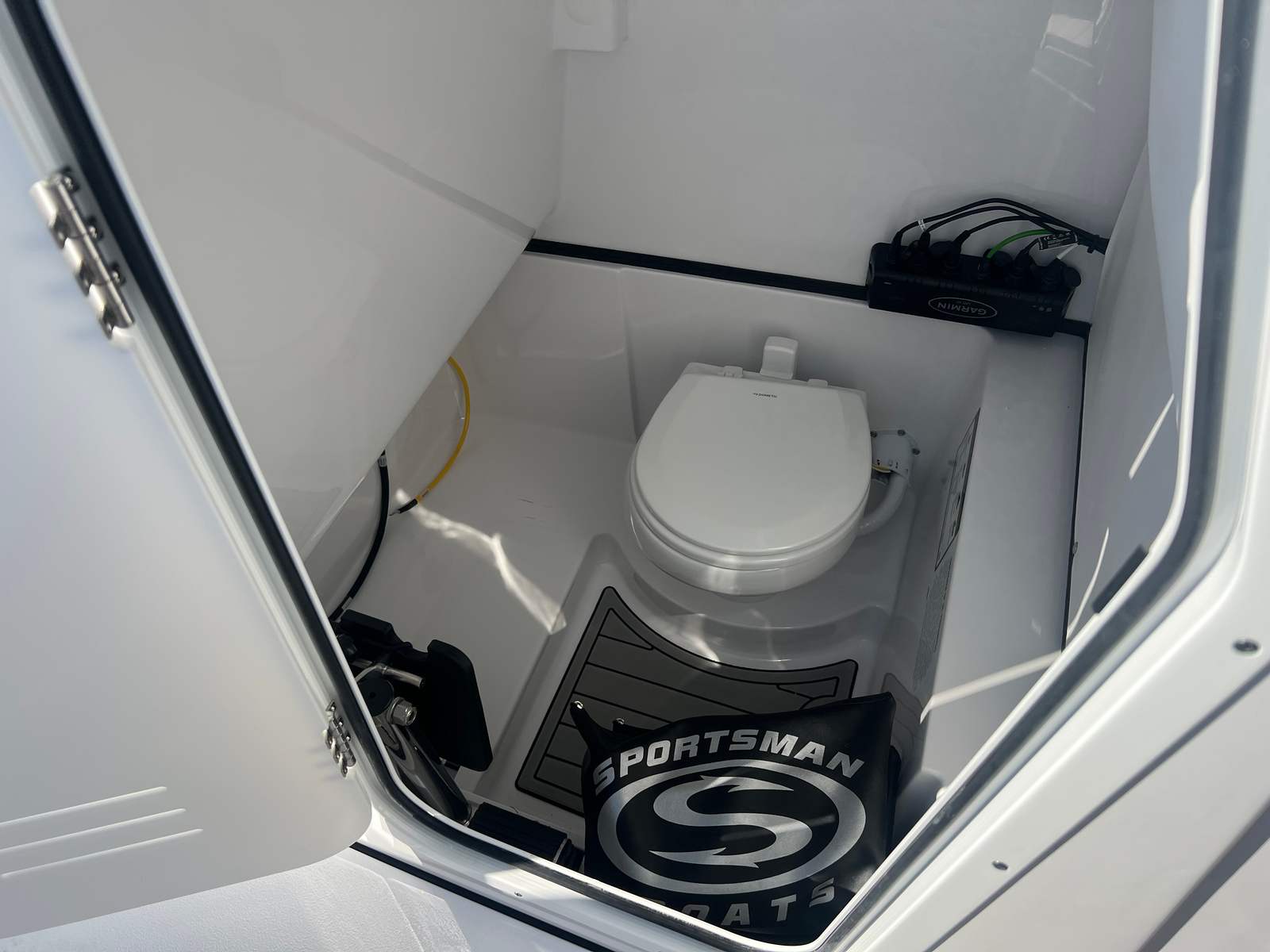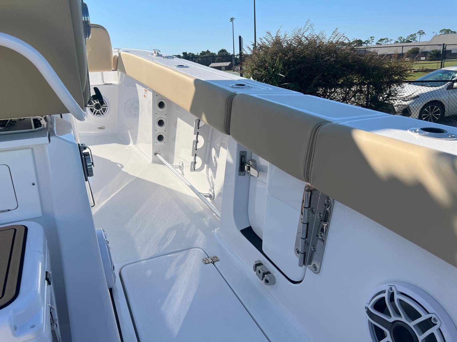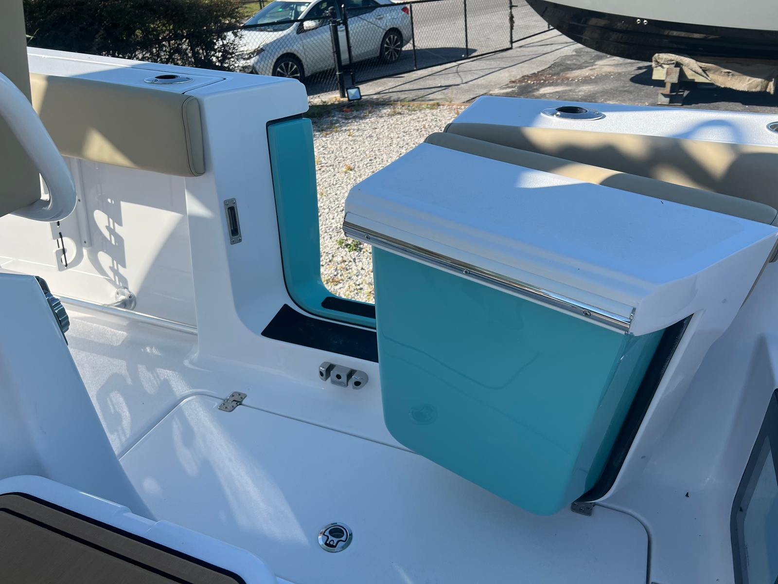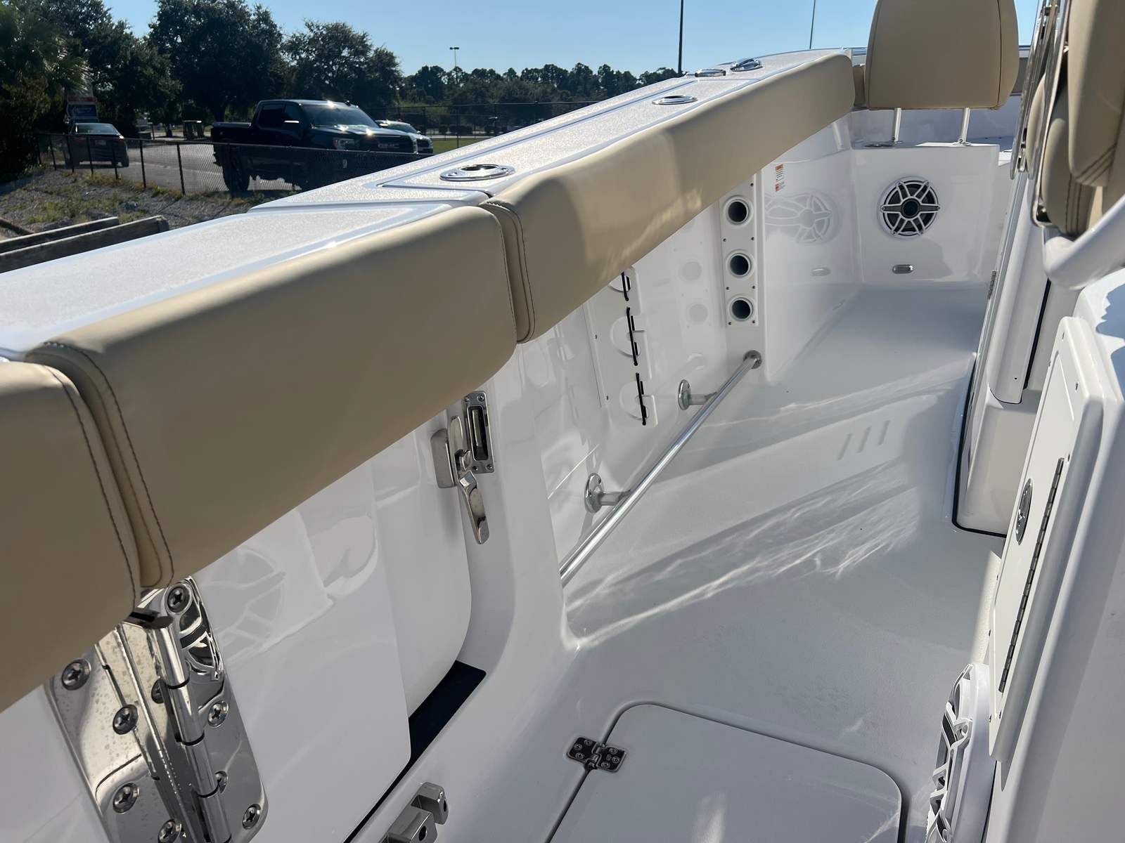 The Sportsman Heritage 261 is loaded with features designed to enhance your time on the water. The half tower with a second station offers elevated visibility, perfect for spotting fish or enjoying panoramic views. The Garmin GMR Fantom 18x Radome at the second station ensures advanced radar capabilities, while the Garmin GXM 54 SiriusXM Weather Antenna keeps you informed of changing weather conditions, adding an extra layer of safety and convenience. The boat’s powder-coated white accents and Coastal Beige upholstery not only provide comfort but also elevate the overall aesthetic. Every detail, from the color-coordinated hardtop to the ergonomic steering wheel, has been thoughtfully selected to create a premium boating experience.