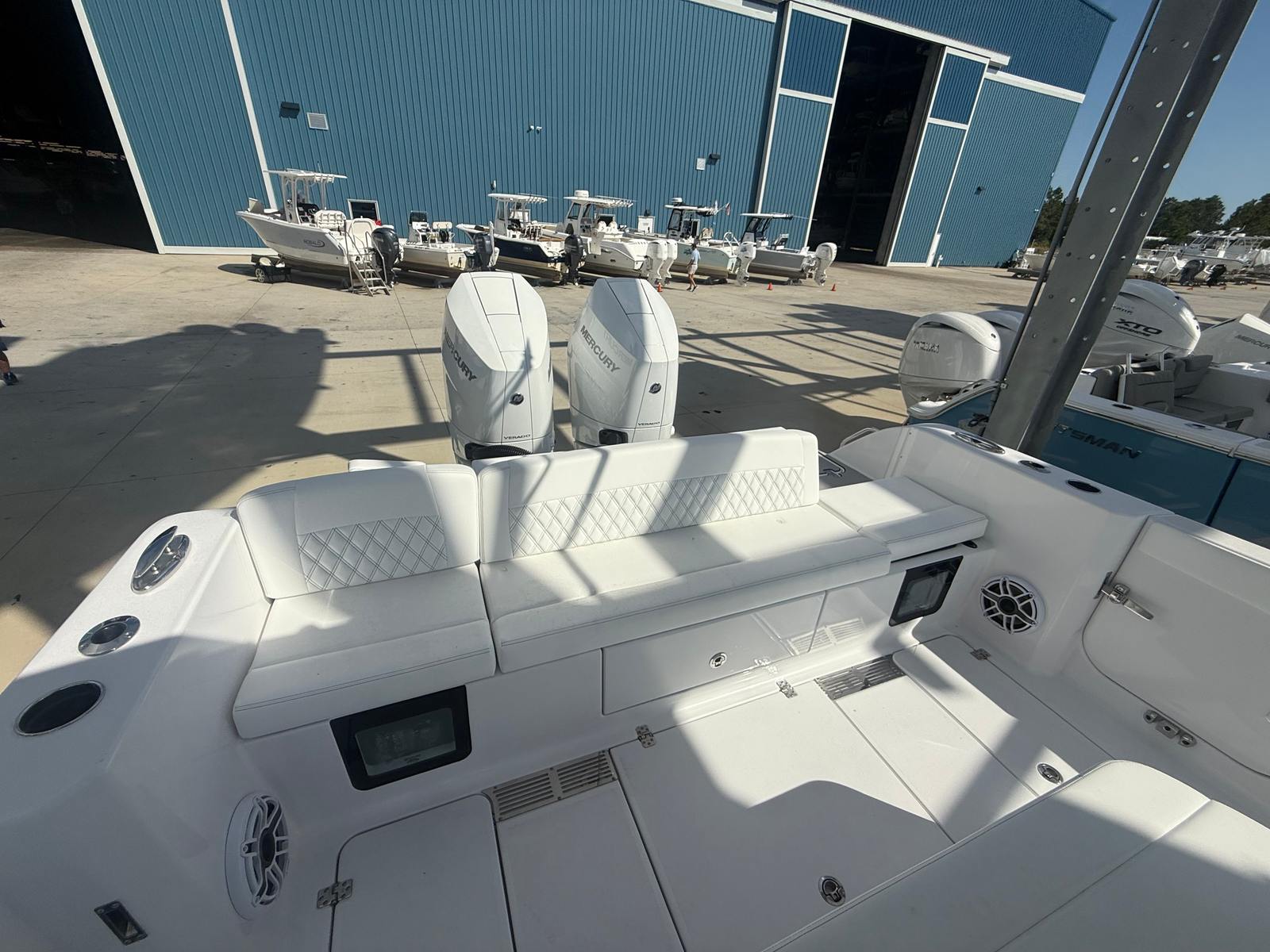 At the heart of the Sportsman Heritage 321 are twin Mercury 400 V10 engines, finished in a brilliant white that matches the boat’s overall aesthetic. With a combined 800 horsepower, this center console is engineered for exhilarating speed, smooth acceleration, and responsive handling. Whether you are navigating coastal waters, heading offshore for a day of fishing, or simply cruising with friends and family, the Heritage 321 delivers a powerful and confident ride. The advanced engine technology ensures optimal fuel efficiency and reliability, so you can focus on making memories on the water without worry.