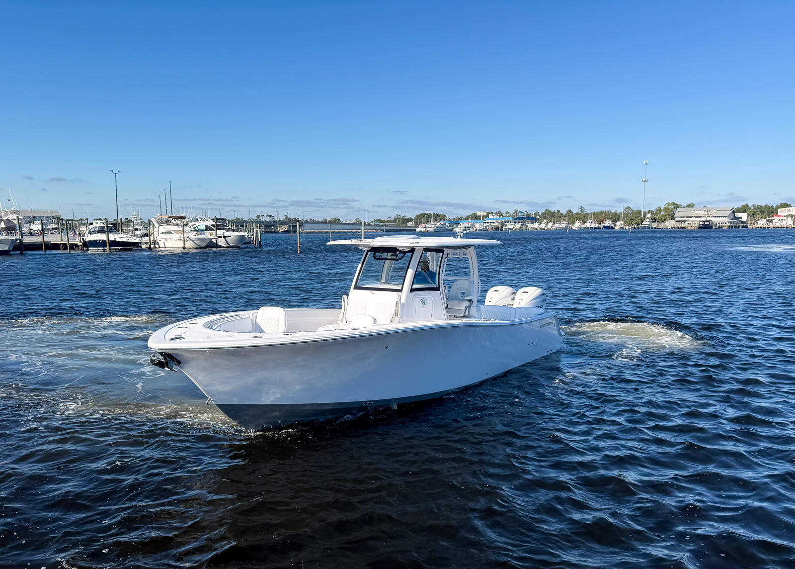 Power and precision are at the heart of the Sportsman Heritage 321. Equipped with twin Yamaha XF450 engines in a crisp white finish, this Center Console boat boasts a total of 900 horsepower. These engines are renowned for their reliability, smooth operation, and impressive fuel efficiency, ensuring you have the muscle to tackle rough seas or reach your favorite destinations quickly. The advanced engineering of the Yamaha XF450s delivers responsive acceleration and agile handling, making every outing both thrilling and safe. Whether you are chasing the horizon or maneuvering through tight marinas, the Heritage 321 offers a driving experience that is both exhilarating and confidence-inspiring.