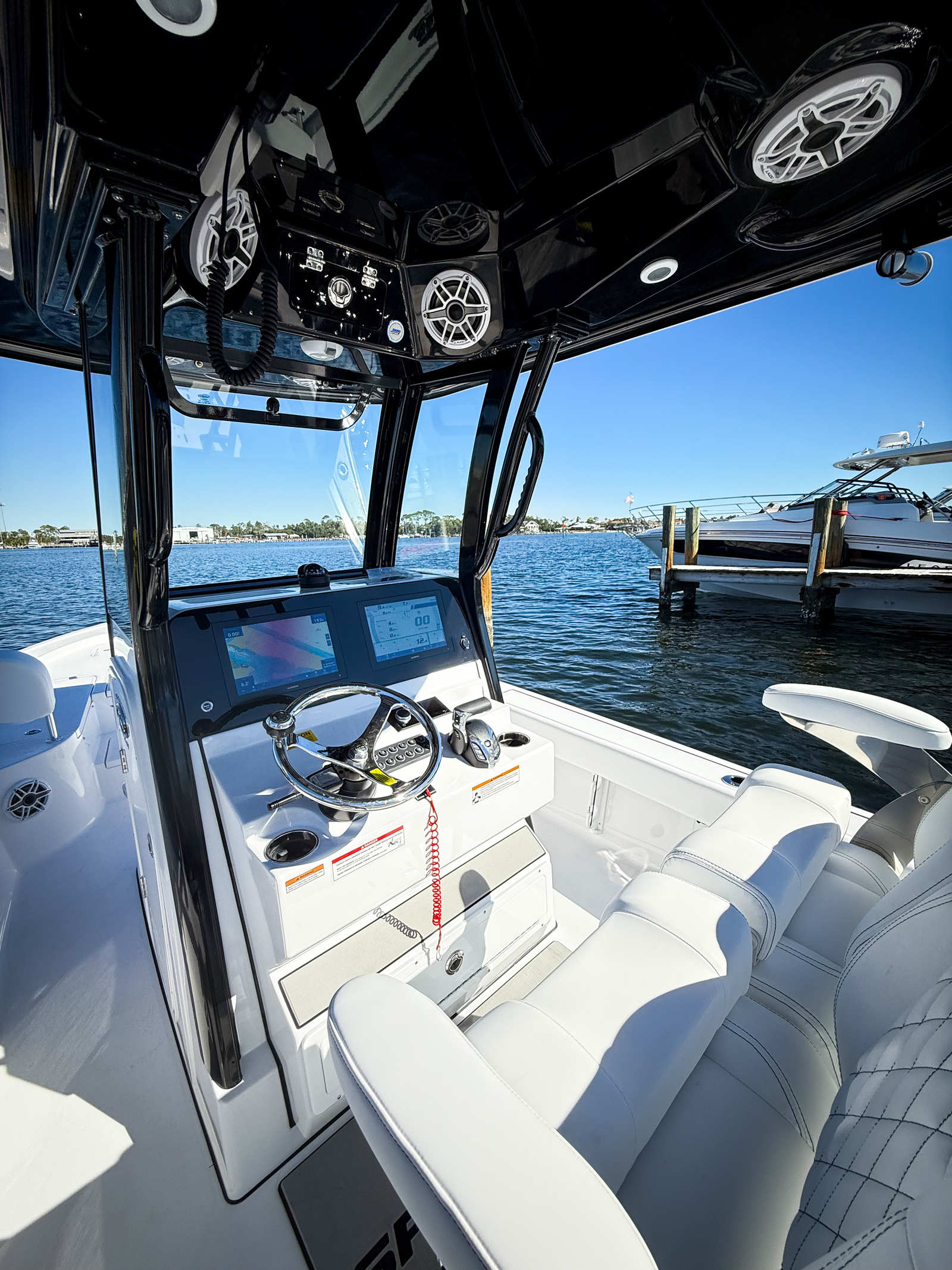 Powering this bay boat is the formidable Yamaha F300XSB2 engine in white, delivering a robust 300 horsepower. This single-engine setup is engineered for reliability and efficiency, providing smooth acceleration and impressive top-end speed. Whether you’re navigating shallow bays or cruising open waters, the Sportsman Masters 247 offers responsive handling and stability, making it ideal for both seasoned boaters and newcomers alike. The advanced steering system, featuring the Edson 13” stainless steel comfort grip steering wheel with PowerKnob, ensures precise control and effortless maneuvering, even in challenging conditions.