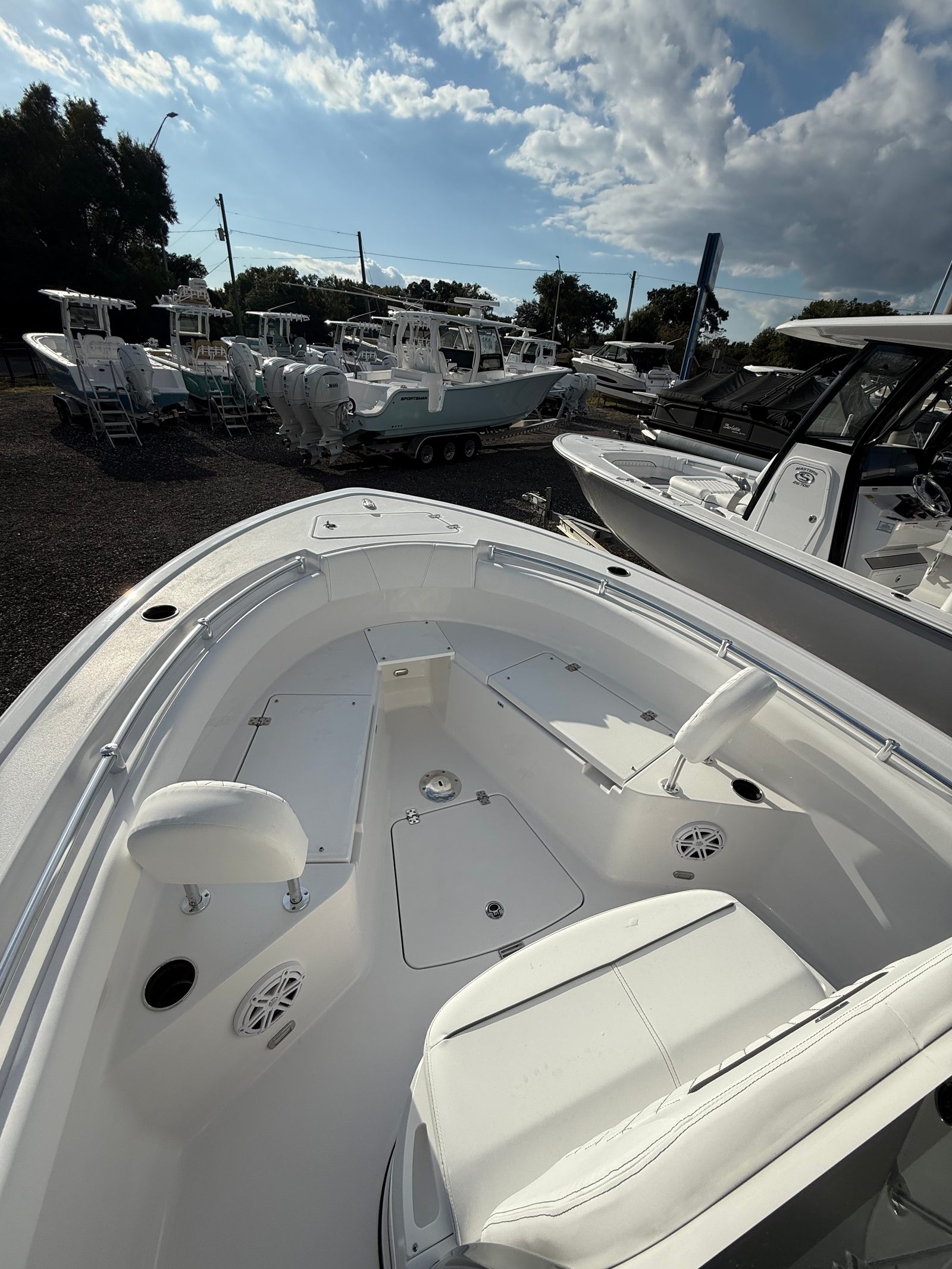 This Center Console boat for sale is engineered for versatility, making it an ideal companion for a wide range of activities. Its manageable 21.42-foot length allows for easy docking and maneuvering, even in crowded marinas or tight spaces. The thoughtful storage solutions, including under leaning post tackle storage and the Slide Out Track for YETI® Cooler, help keep the deck clutter-free and organized, enhancing safety and convenience.The Open 212’s fuel-efficient engine and streamlined hull design make it perfect for day trips, extended outings, or spontaneous getaways. Whether you’re heading out for a morning of fishing, an afternoon of watersports, or a relaxing sunset cruise, this Sportsman boat adapts to your needs with ease. The removable Bow Sundeck/Table with Cushion offers flexibility for different activities, while the Trolling Motor Plug, Harness, and Adapter provide added capability for anglers who want to explore new fishing grounds.