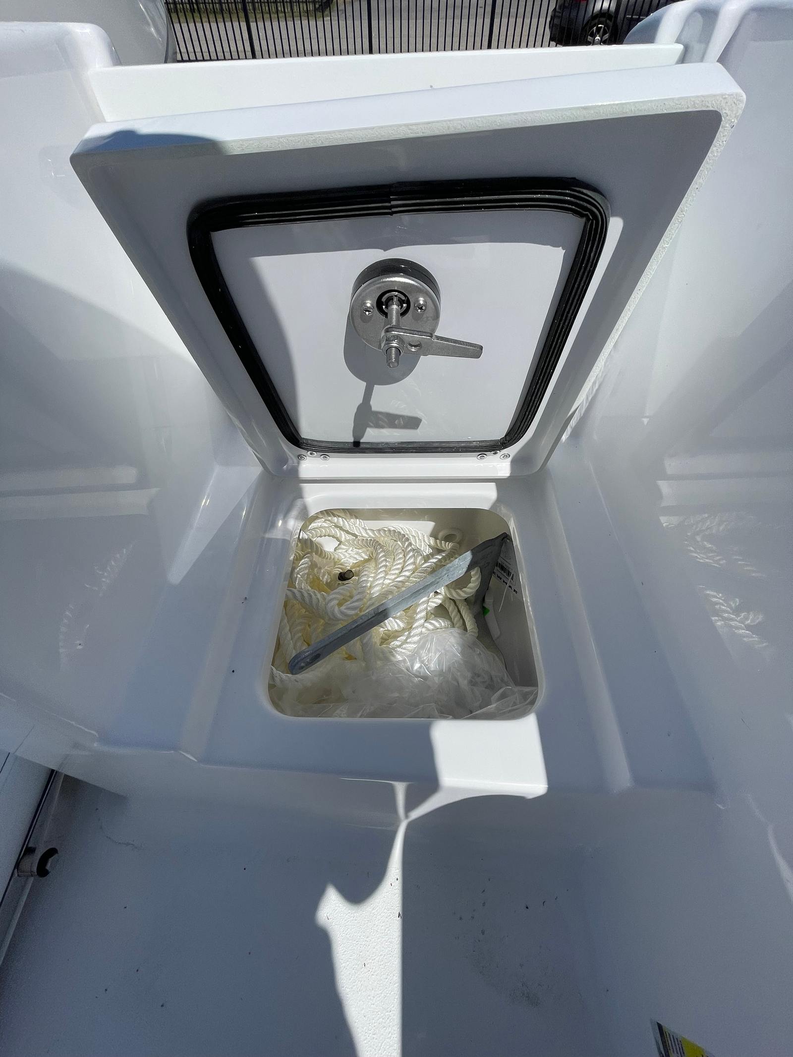 The 2025 Sportsman Open 212 is loaded with features that enhance both comfort and convenience. The fiberglass console is thoughtfully designed with a footrest and integrated storage, keeping your essentials organized and within easy reach. The fiberglass hard top, complete with LED lighting, provides ample shade and illumination for early morning launches or evening cruises. The hardtop’s underside, finished in Ice Blue, adds a custom touch that ties the entire design together.The boat’s powder coating in white not only looks sharp but also offers added protection against the elements. Sileather Polar White upholstery delivers a luxurious seating experience that is both durable and easy to clean, ensuring your boat stays looking fresh season after season. At the helm, the Garmin 12" GPS screen with built-in Wi-Fi puts navigation and connectivity at your fingertips, while the Garmin Apollo RA670 stereo with SportTuN ensures your favorite tunes are always part of the journey.For those who love to relax, the bow sundeck/table with a removable cushion transforms the front of the boat into a versatile lounge area, perfect for sunbathing, picnicking, or simply enjoying the view.