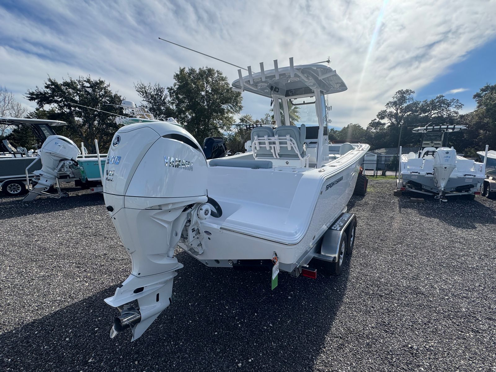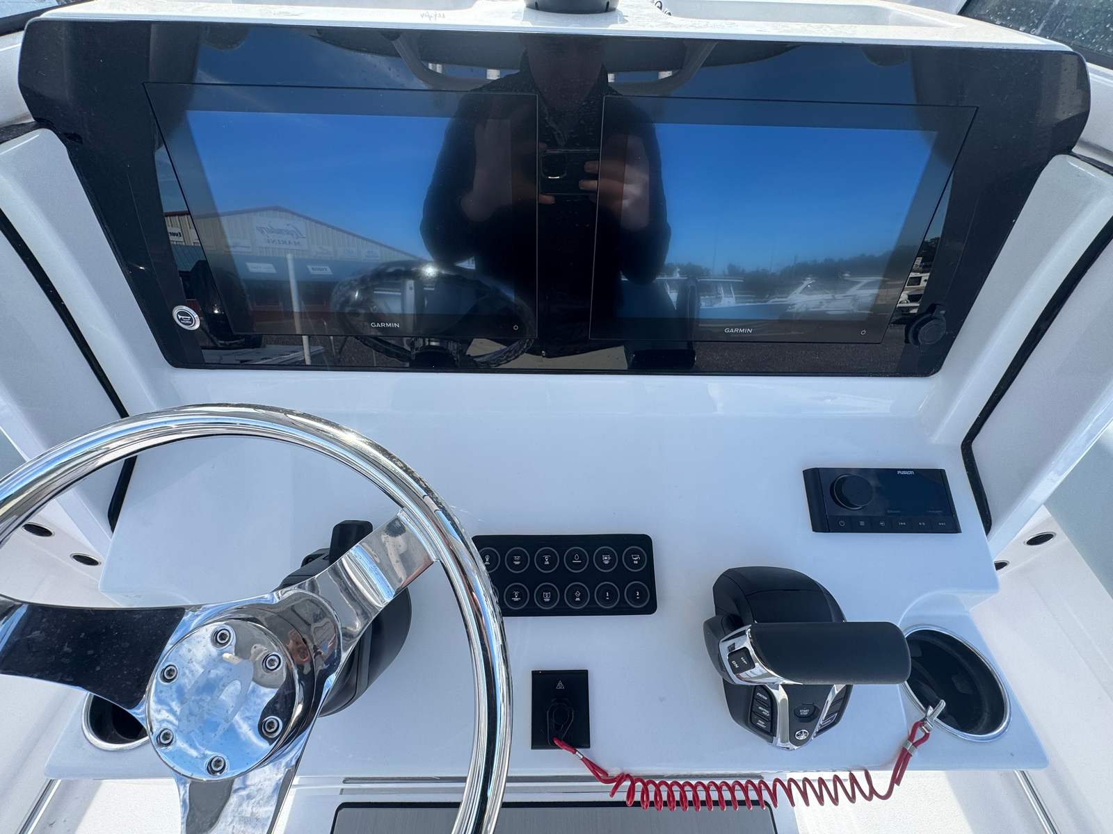 At the heart of the Sportsman Open 232 is the powerful Yamaha F300XSB2 engine, finished in a crisp white that complements the boat’s overall look. With 300 horsepower at your command, this Center Console boat is built for exhilarating performance. The Yamaha F300XSB2 is renowned for its reliability, smooth operation, and impressive fuel efficiency, ensuring you can explore farther and faster with confidence. Whether you’re chasing the horizon or navigating tight waterways, the Open 232’s responsive handling and robust power make every outing a thrill.