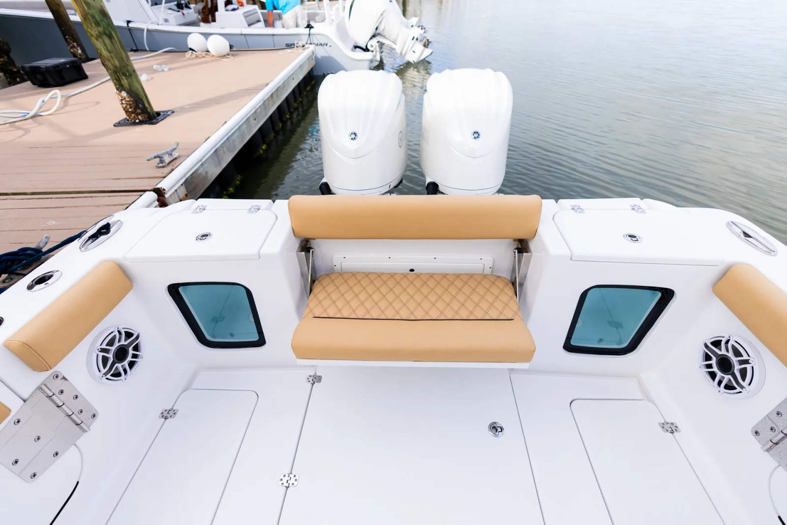 At the heart of the Sportsman Open 282 lies a powerhouse of marine engineering: twin Yamaha F300XSB engines, finished in elegant white. These engines deliver a combined 600 horsepower, ensuring that you have all the speed and agility you need for offshore runs, coastal cruising, or quick trips to your favorite fishing spot. The Yamaha F300XSB engines are renowned for their reliability, smooth operation, and fuel efficiency, making them a preferred choice for discerning boaters. Whether you’re navigating choppy waters or gliding across glassy bays, the Open 282’s advanced hull design and robust propulsion system provide a stable, exhilarating ride every time.