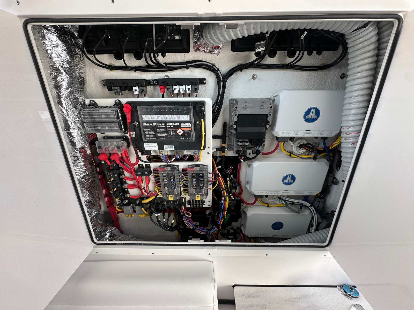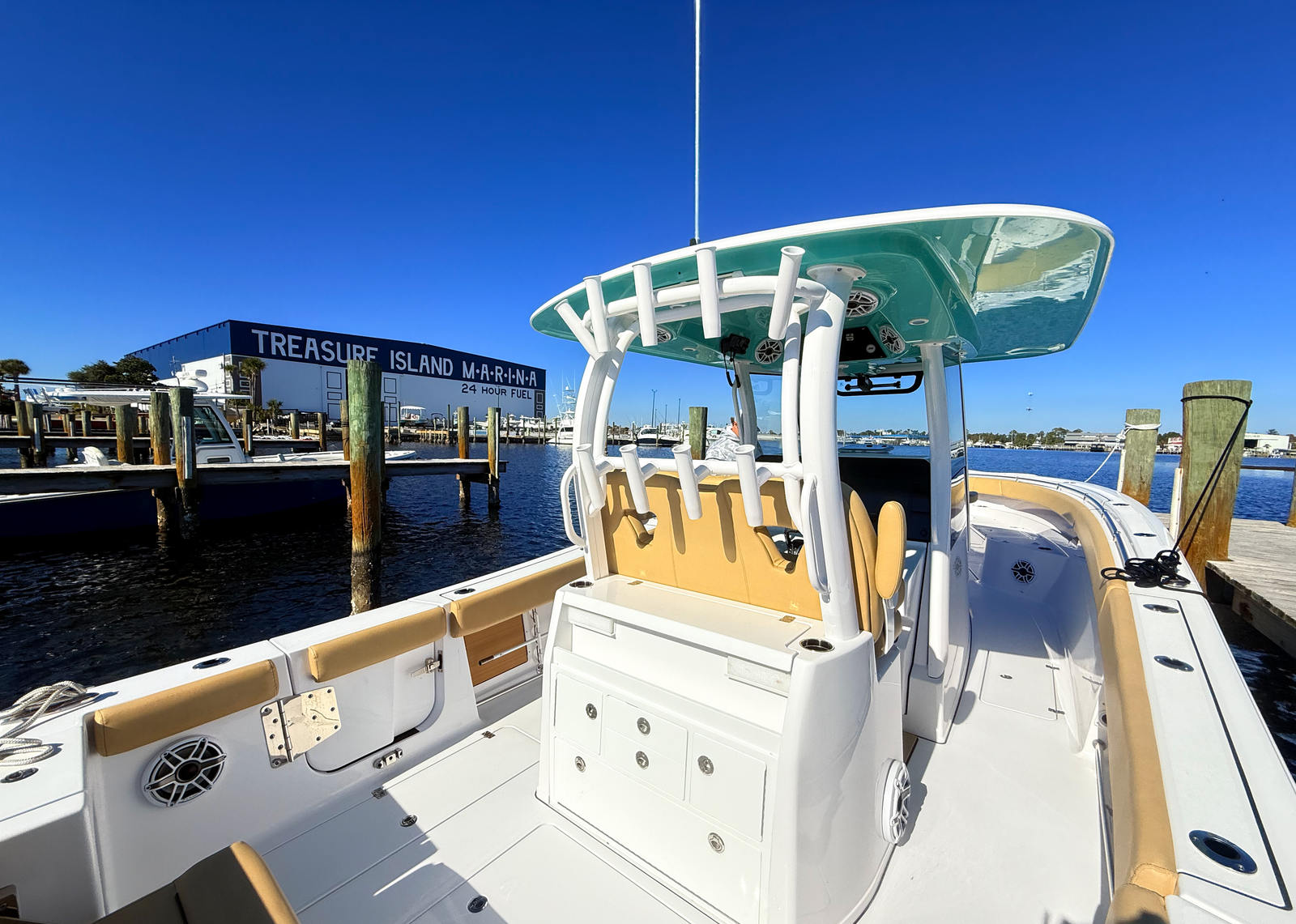 The Sportsman Open 322 is designed with practicality in mind, making ownership as enjoyable as it is rewarding. The intuitive helm layout, featuring dual Garmin displays and the ergonomic Edson steering wheel, puts all essential controls at your fingertips for stress-free navigation. The boat’s size and design make docking straightforward, while the efficient Yamaha engines help keep fuel costs manageable during extended outings. The ample deck space and thoughtful storage solutions ensure you have room for all your gear, whether you are packing fishing equipment, water toys, or picnic supplies. The air conditioning system provides a welcome retreat from the heat, making long days on the water more comfortable for everyone on board.