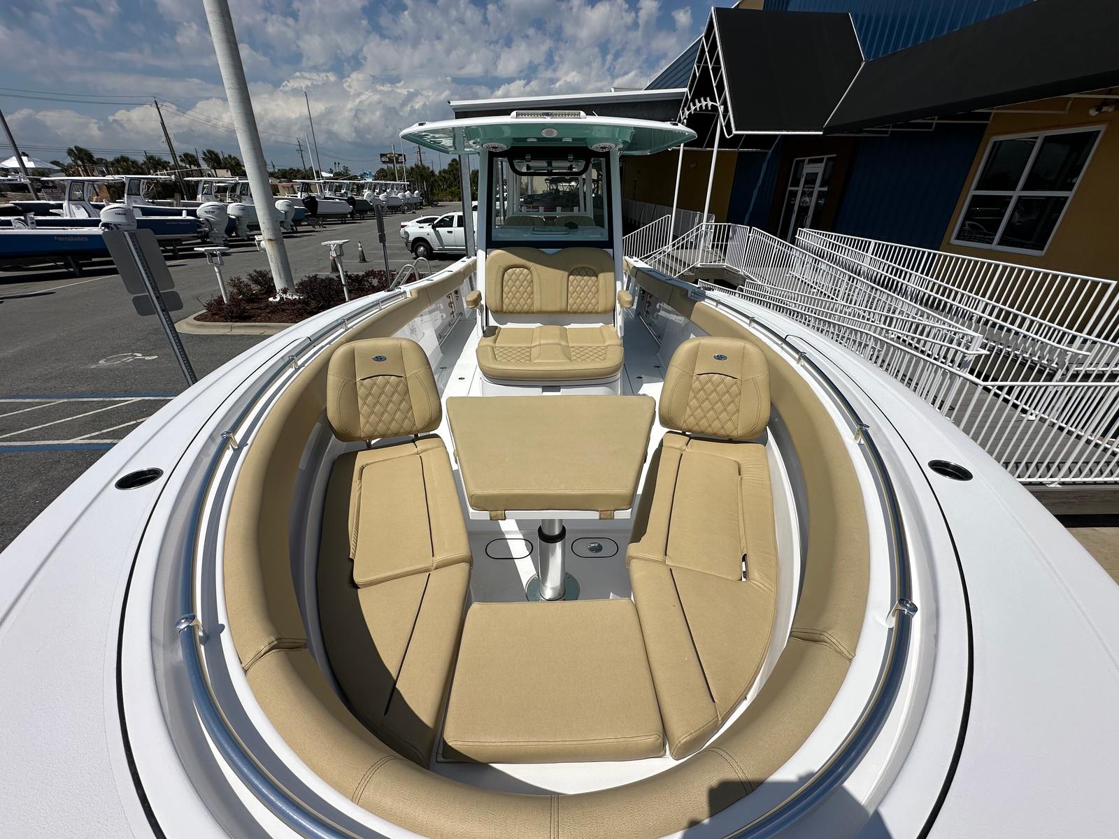 The 2025 Sportsman Open 322 measures an impressive 32.17 feet in length, offering ample space for both relaxation and activity. As a new model, this Center Console boat boasts the latest advancements in marine engineering and design, ensuring you enjoy every moment on the water. The striking Snow White hull sides are complemented by a Sea Glass Green hull bottom and matching HardTop underside, creating a visually stunning presence that stands out at any marina or on open water. The Desert Tan upholstery adds a touch of sophistication and comfort, making every journey a pleasure.