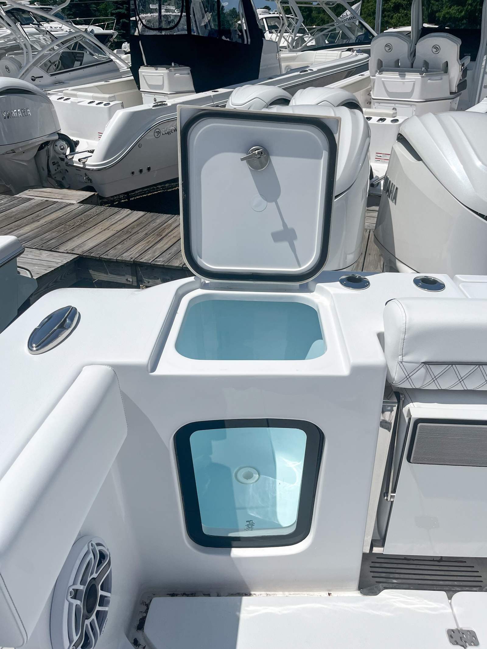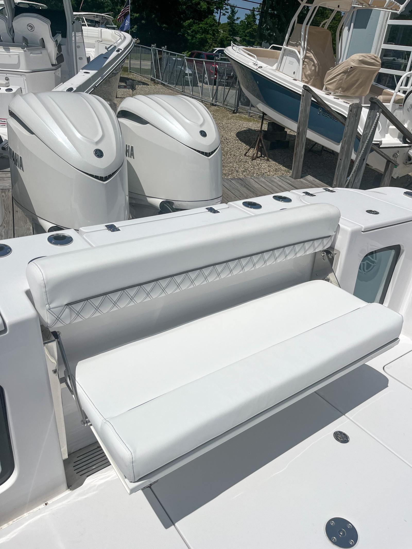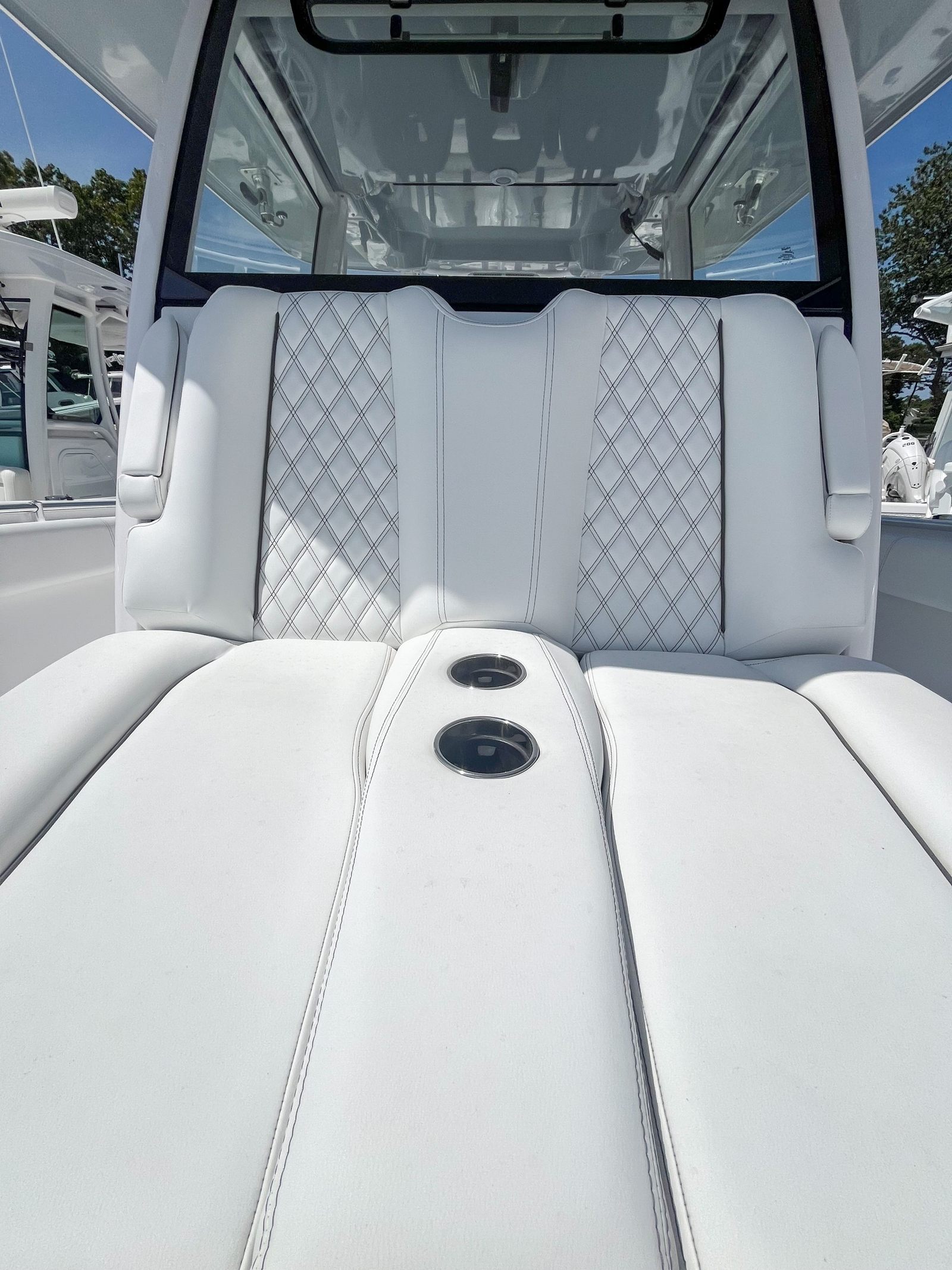 The Sportsman Open 352 is designed with practicality in mind, making ownership as enjoyable as it is exciting. The generous storage options throughout the boat allow you to stow gear, tackle, and personal items securely and conveniently. The efficient hull design and triple engine setup make docking and maneuvering straightforward, even in crowded marinas or tight spaces. Fuel efficiency is a hallmark of the Sportsman brand, and the Open 352’s advanced engineering ensures you spend more time on the water and less time at the pump. The durable upholstery and powder-coated surfaces simplify cleaning and maintenance, so you can focus on making memories instead of worrying about upkeep.