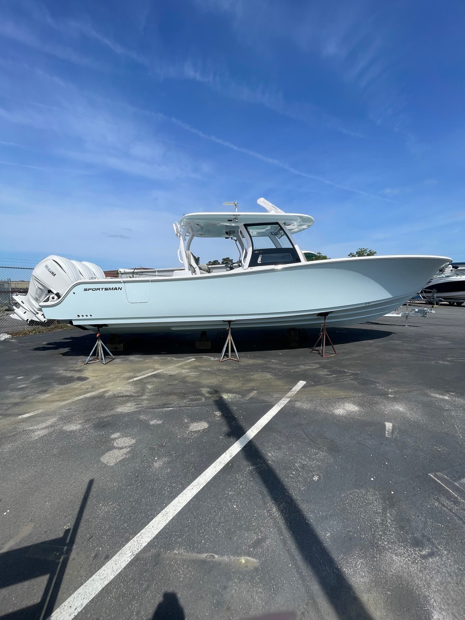 The 2025 Sportsman Open 352 stands out as a premier center console boat, measuring an impressive 35 feet in length. Its sleek hull, finished in a striking Ice Blue on both the sides and bottom, immediately catches the eye and hints at the sophistication within. This vessel is meticulously crafted for those who appreciate both style and substance, offering a seamless blend of comfort, utility, and high-end aesthetics. The new condition ensures you’re getting the latest advancements in marine engineering and design, making this Sportsman boat for sale a top choice for discerning boaters.
