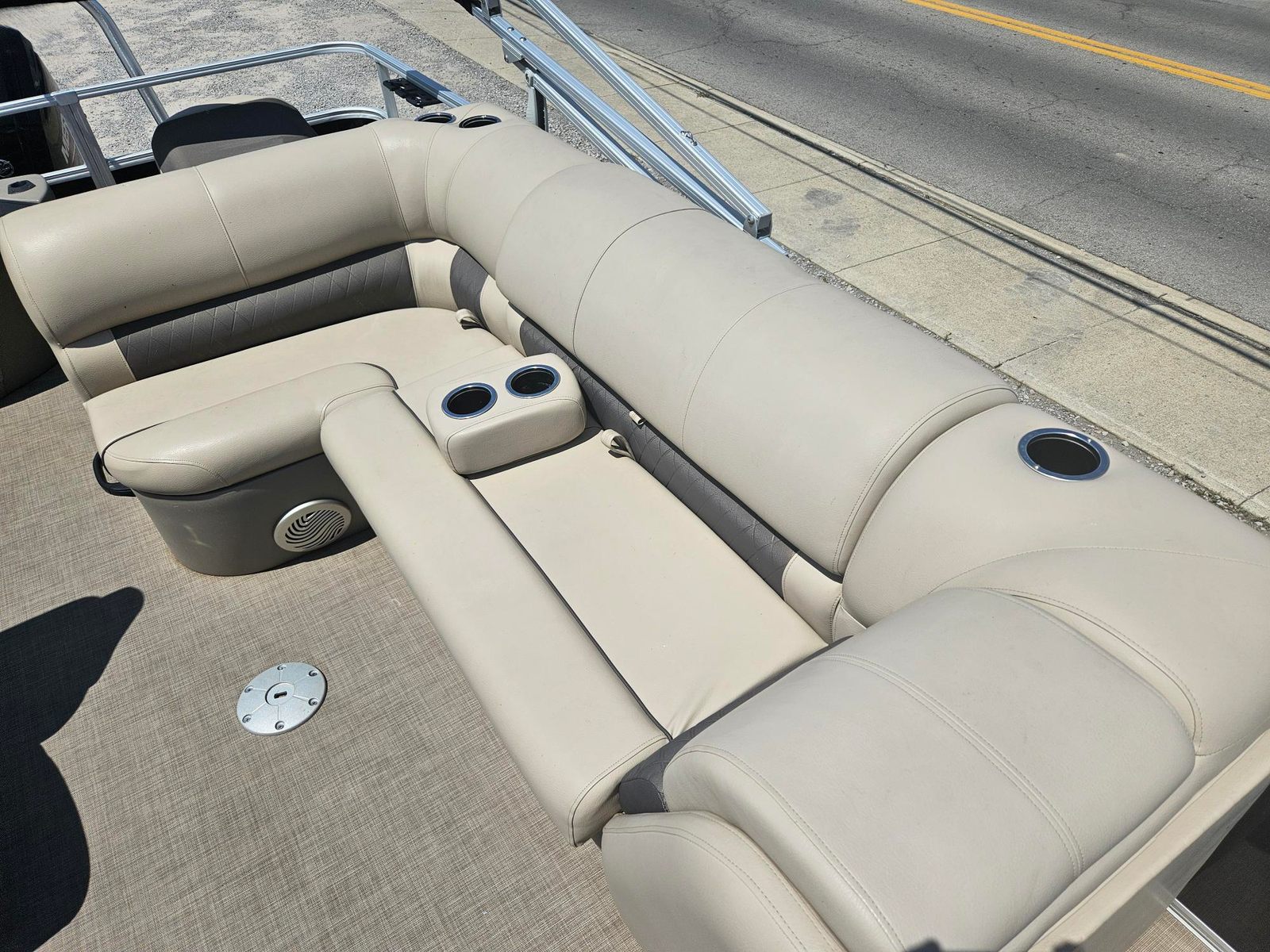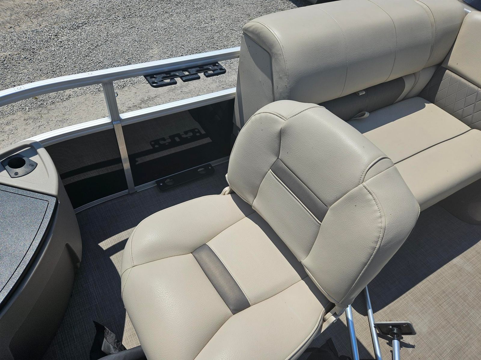 The 2021 Sun Tracker Fishin Barge 20 DLX stands out as a premier option in the world of used pontoon boats. Measuring just under 22 feet in length, this pontoon offers ample space for family and friends to relax, fish, and enjoy the open water. Its thoughtful design ensures that every inch of space is maximized for comfort and utility, making it a top contender for anyone seeking a Sun Tracker boat for sale. The used condition of this vessel means you can enjoy all the benefits of a high-quality pontoon at a more accessible price point, without compromising on style or performance.