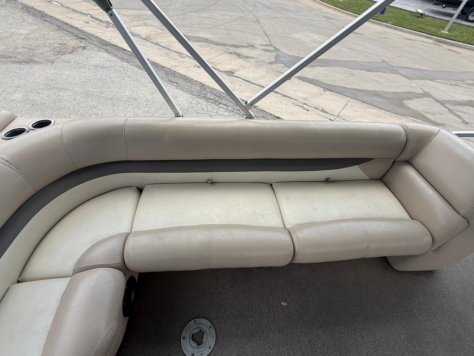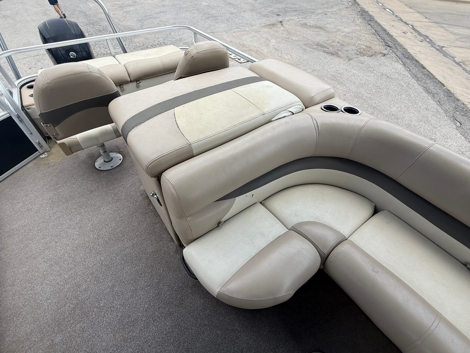 The Sun Tracker Fishin Barge 24 DLX is designed with practicality in mind. Its spacious layout offers plenty of storage options for fishing gear, water toys, and personal items, keeping the deck clutter-free and organized. The pontoon’s design makes docking and maneuvering a breeze, even for those new to boating. Fuel efficiency is another key benefit, allowing you to enjoy longer trips without frequent refueling stops.This used pontoon boat is also easy to maintain, thanks to its durable construction and quality components. Routine cleaning and upkeep are straightforward, so you can spend more time enjoying the water and less time on chores. The Fishin Barge 24 DLX is a smart investment for anyone seeking a reliable, low-maintenance boat that delivers exceptional value and enjoyment.