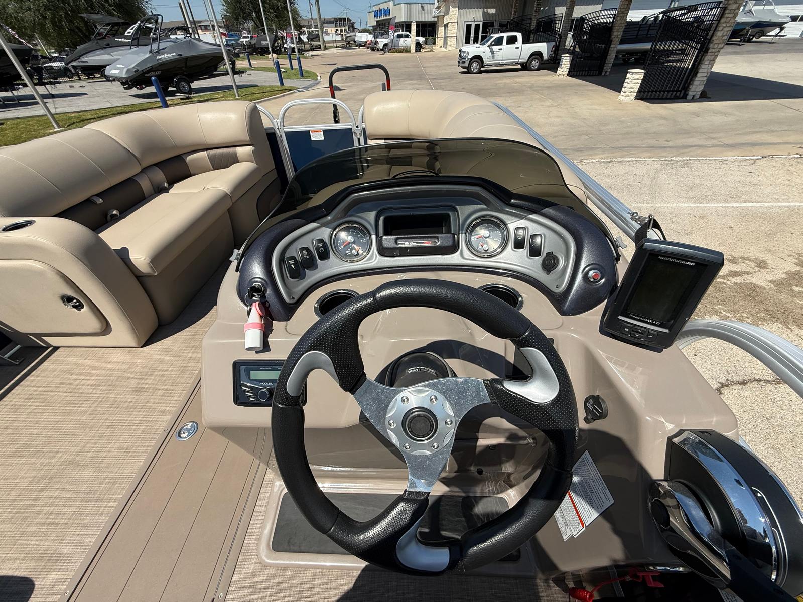 The Party Barge 22RF XP3 stands out with its array of special features designed to enhance every outing. The spacious deck layout provides plenty of seating and lounging options, ensuring that everyone on board can relax in comfort. The rear-facing lounge is perfect for sunbathing or keeping an eye on swimmers, while the open floor plan makes it easy to move about and socialize. The pontoon’s durable construction and quality materials reflect Sun Tracker’s commitment to long-lasting performance and style.With a length of 24.02 feet, this pontoon boat offers generous storage solutions for all your gear, from coolers and water toys to fishing equipment and picnic supplies. The thoughtful design ensures that everything has its place, keeping the deck uncluttered and safe. The used condition of this boat means you can enjoy premium features and craftsmanship at a more accessible price point, making it a smart investment for those seeking value without compromising on quality.